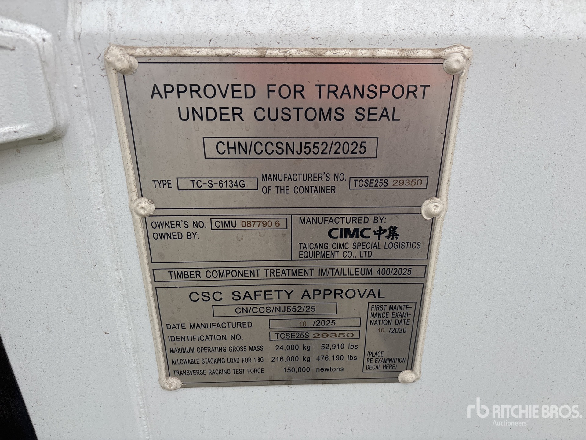 The detailed equipment information is limited in scope, and Ritchie Bros. Auctioneers has not inspected any aspects or components of the equipment other than those expressly set forth herein. Unless expressly stated, we make no representations or warranties, express or implied, concerning the equipment or its components, including without limitation any representations or warranties concerning functionality, conformity or compliance with any safety standard or requirement of any applicable authority or regulatory body, fitness for any particular purpose, or merchantability. You are strongly advised to perform your own detailed inspection of the equipment prior to bidding.