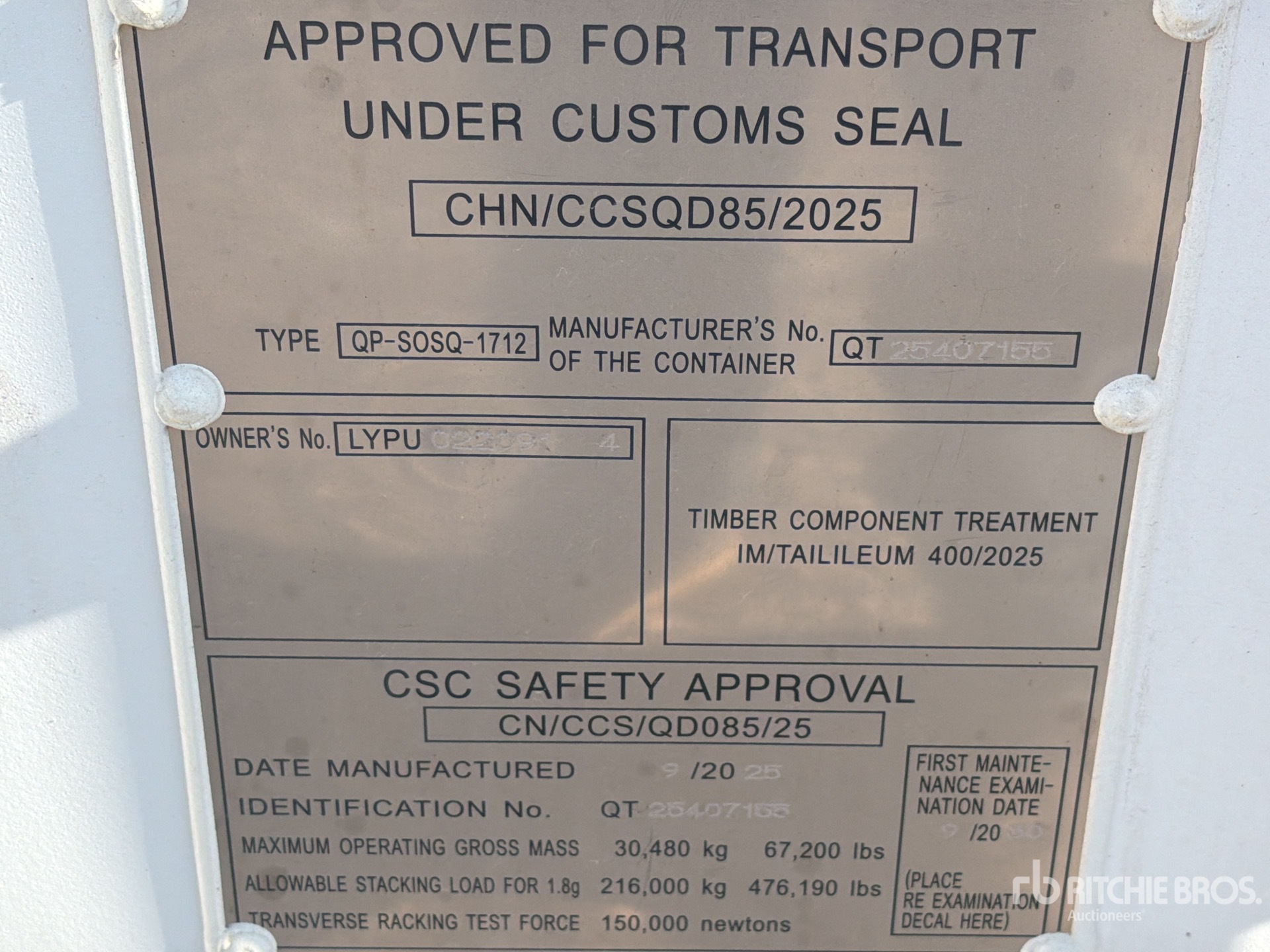 A qualified Ritchie Bros. employee collected detailed equipment information and performed functional tests on the key components of this asset. You, or a proxy, may also inspect any items on site prior to bidding on auction day.