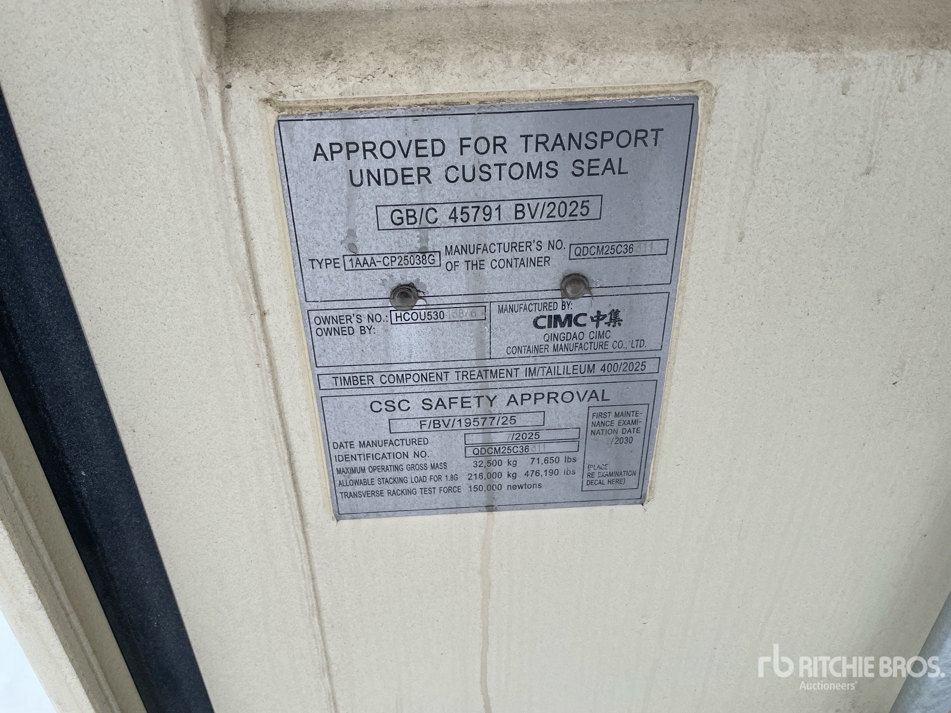 A qualified Ritchie Bros. employee collected detailed equipment information and performed functional tests on the key components of this asset. You, or a proxy, may also inspect any items on site prior to bidding on auction day.
