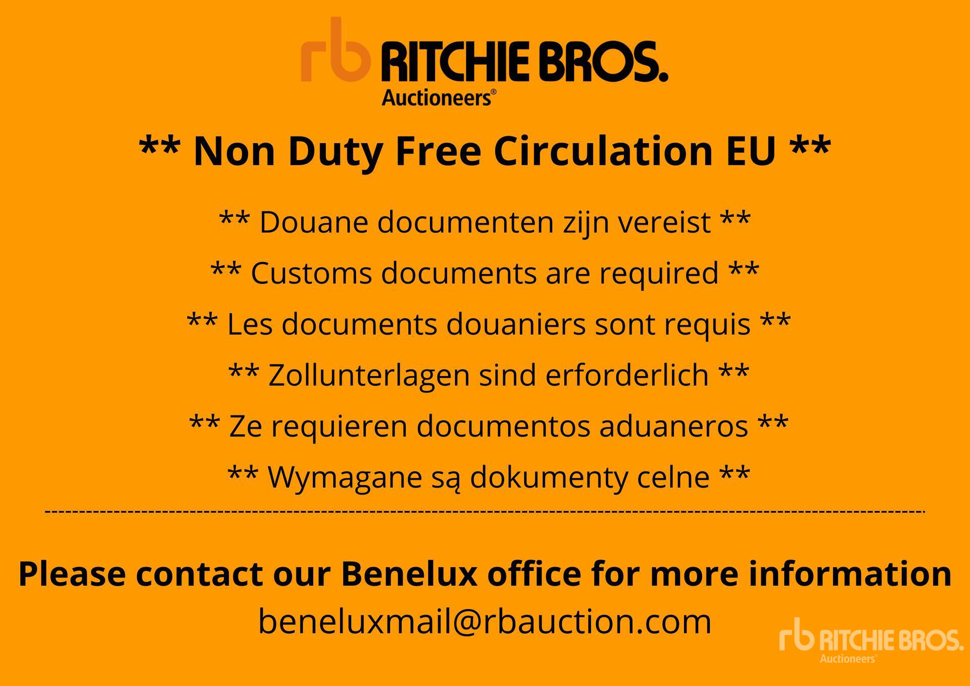 The detailed equipment information is limited in scope, and Ritchie Bros. Auctioneers has not inspected any aspects or components of the equipment other than those expressly set forth herein. Unless expressly stated, we make no representations or warranties, express or implied, concerning the equipment or its components, including without limitation any representations or warranties concerning functionality, conformity or compliance with any safety standard or requirement of any applicable authority or regulatory body, fitness for any particular purpose, or merchantability. You are strongly advised to perform your own detailed inspection of the equipment prior to bidding.