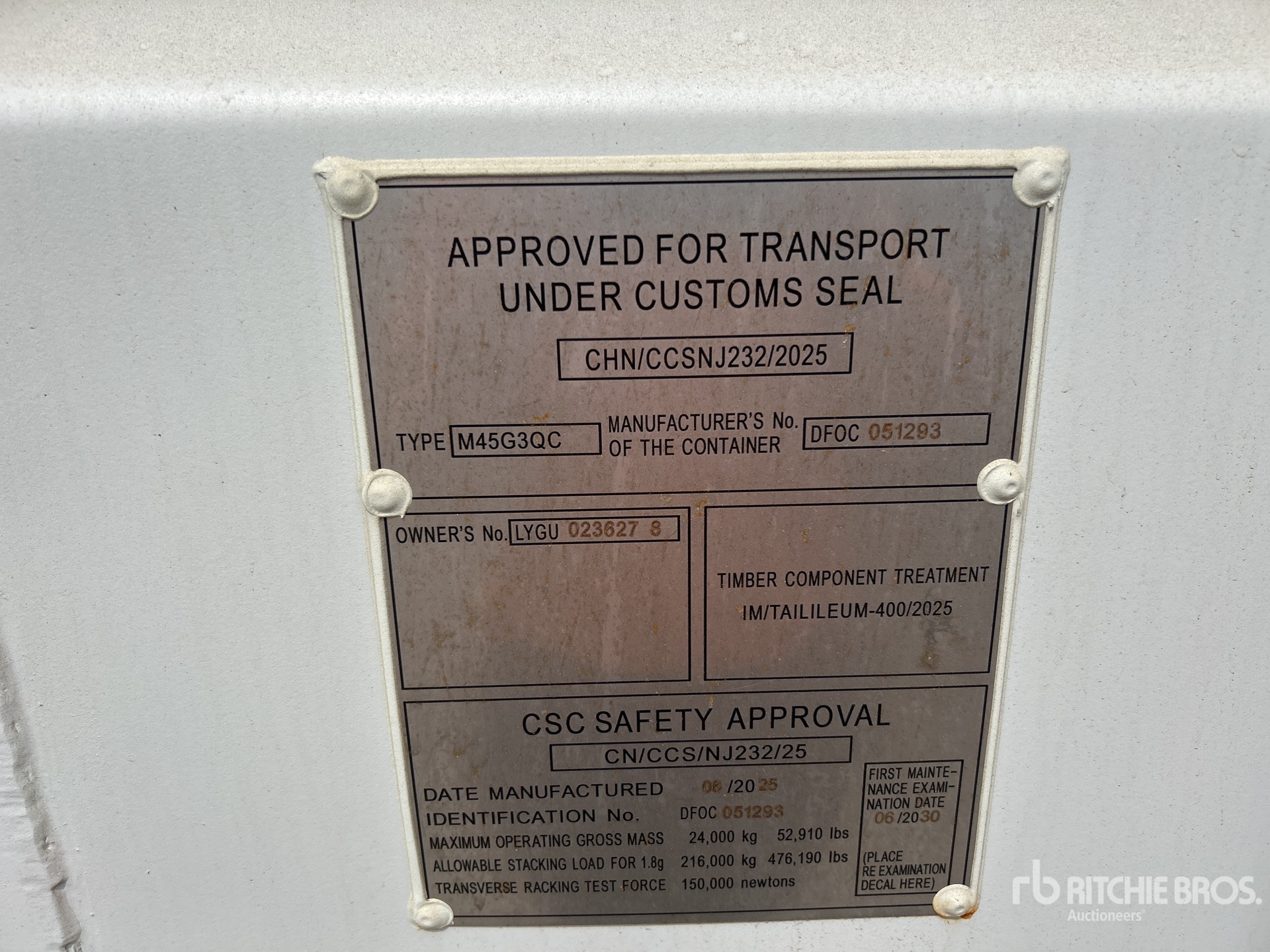 A qualified Ritchie Bros. employee collected detailed equipment information and performed functional tests on the key components of this asset. You, or a proxy, may also inspect any items on site prior to bidding on auction day.