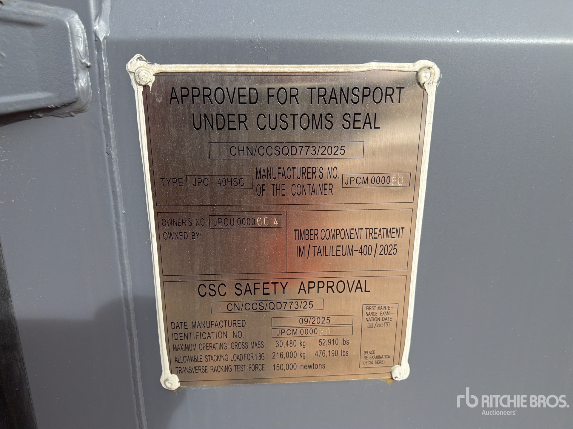 A qualified Ritchie Bros. employee collected detailed equipment information and performed functional tests on the key components of this asset. You, or a proxy, may also inspect any items on site prior to bidding on auction day.