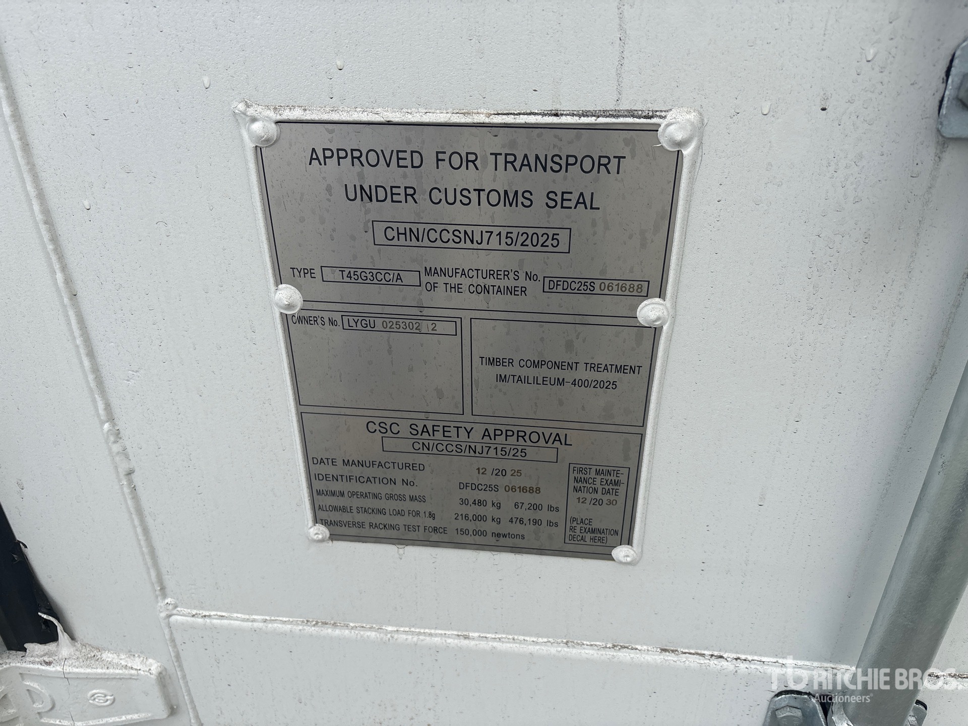 A qualified Ritchie Bros. employee collected detailed equipment information and performed functional tests on the key components of this asset. You, or a proxy, may also inspect any items on site prior to bidding on auction day.