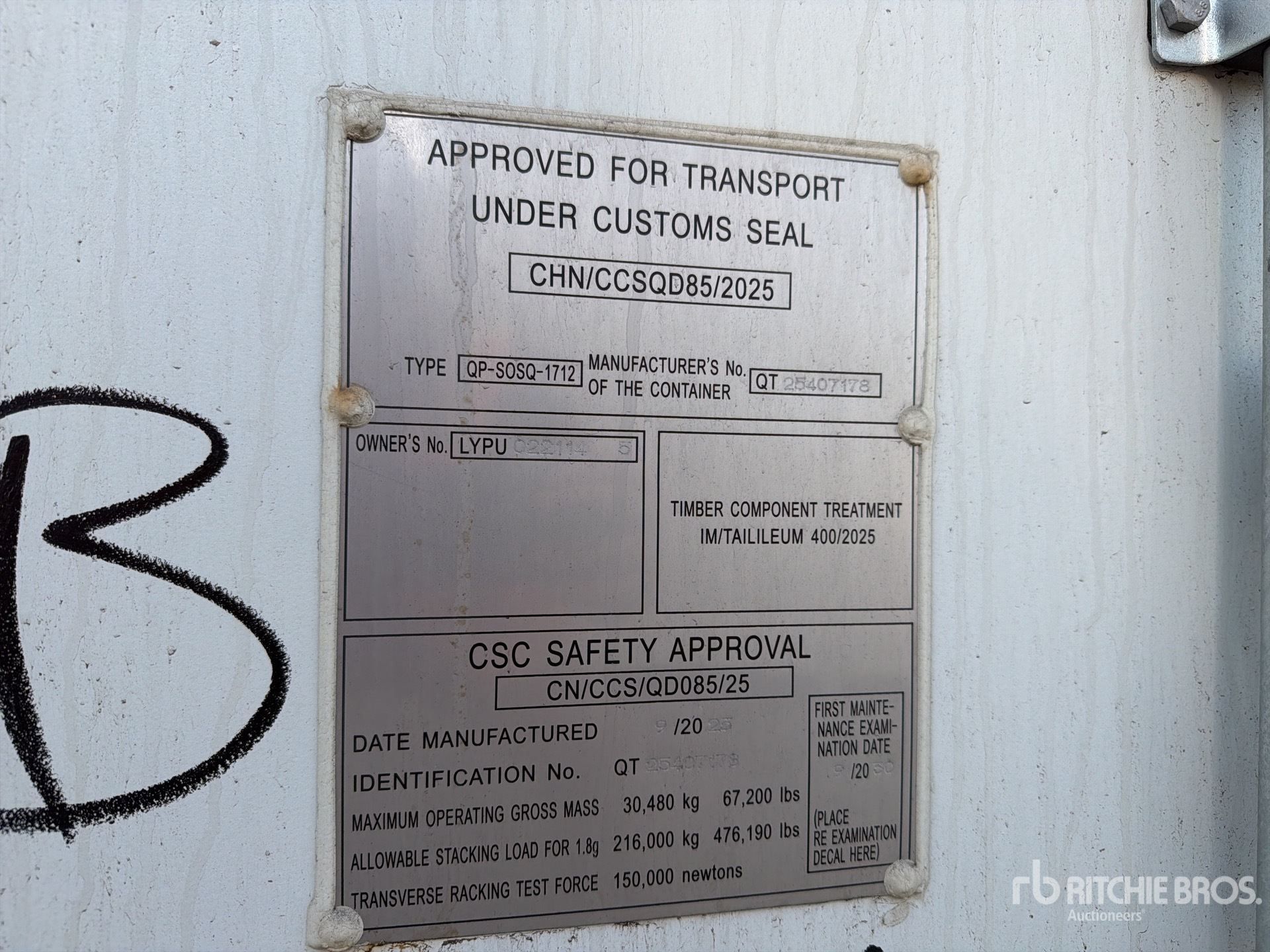 A qualified Ritchie Bros. employee collected detailed equipment information and performed functional tests on the key components of this asset. You, or a proxy, may also inspect any items on site prior to bidding on auction day.