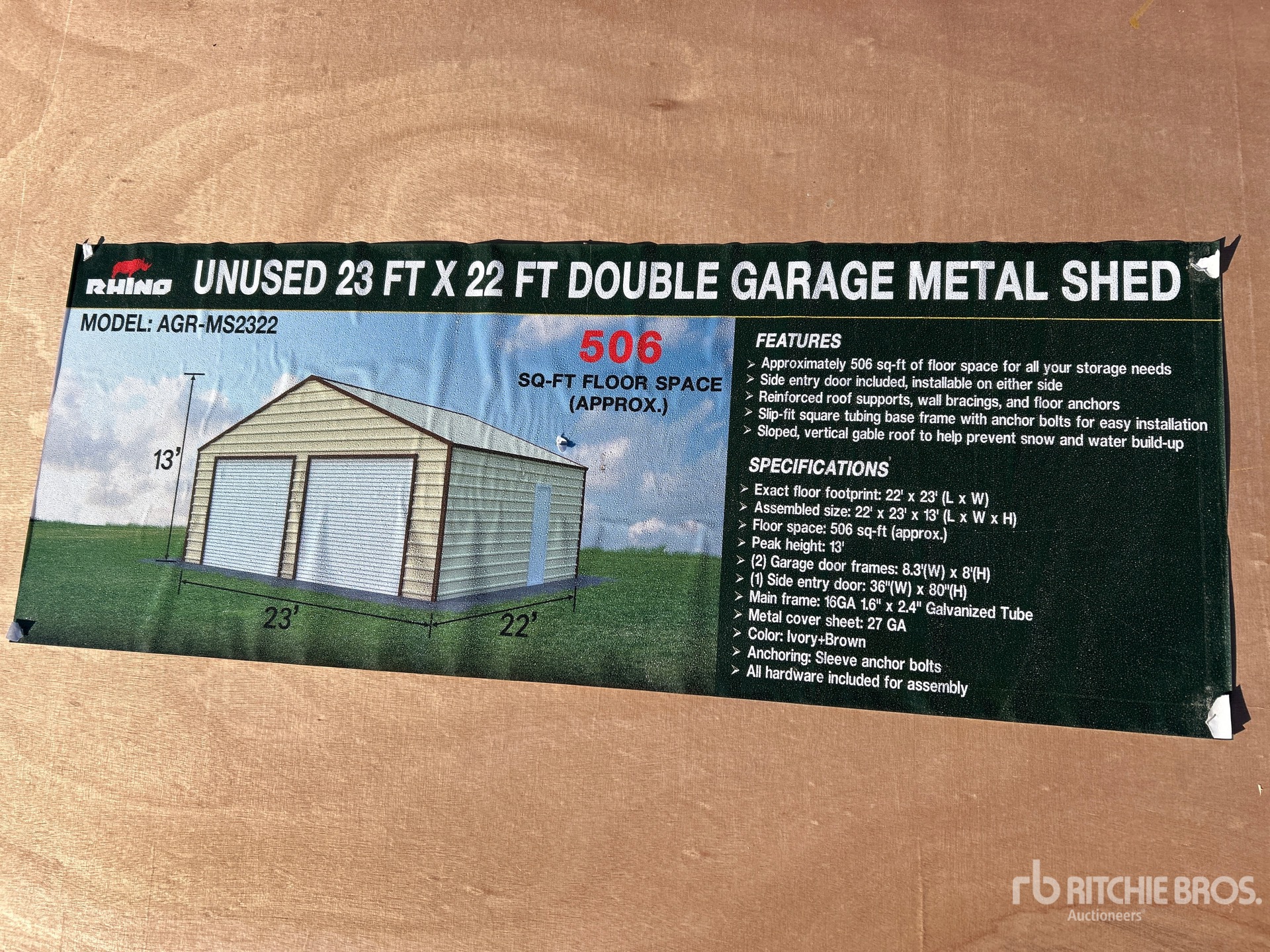 2025 AGR-MS2322 23 ft x 22 ft Double Garage Metal Storage Building (Unused)