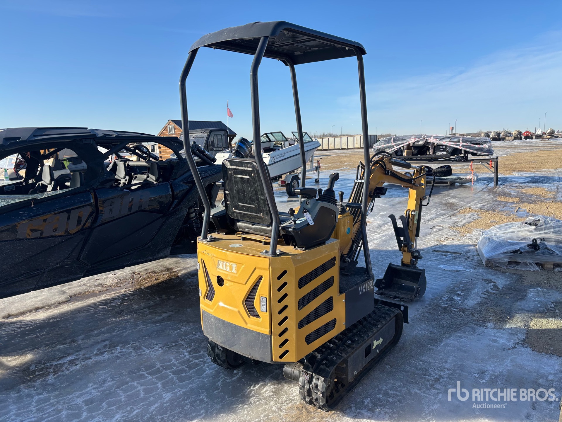2 ft 6 in Stick, Auxiliary Hydraulic Plumbing, Backfill Blade, 7 in Rubber Tracks, 16 in Digging Bucket, Manual Thumb