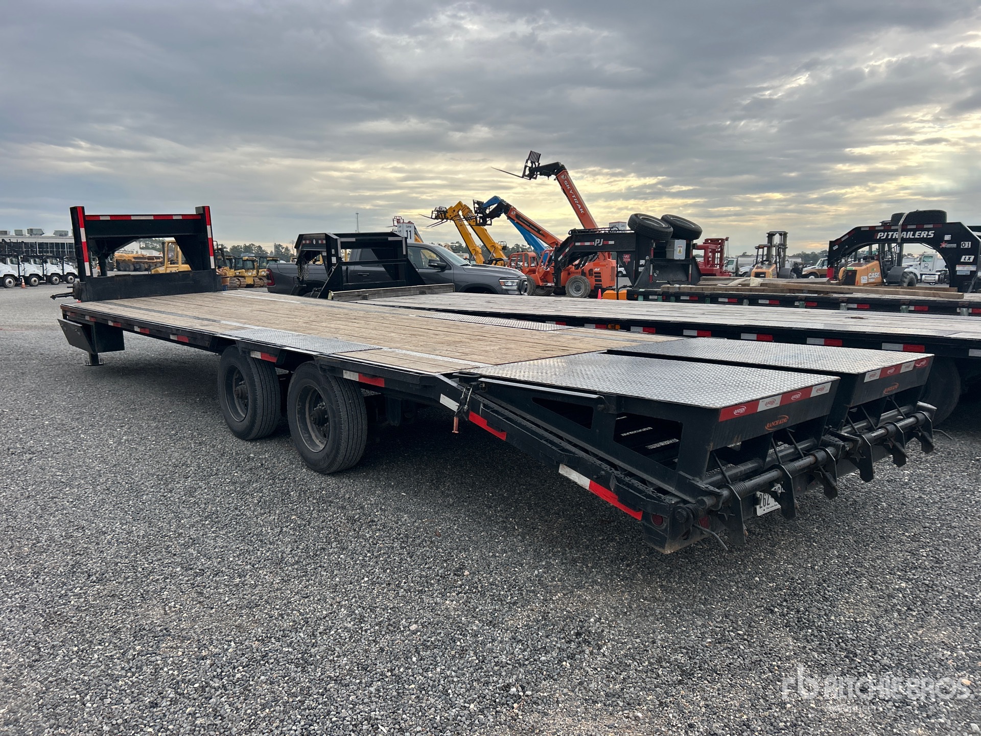 Spring Suspension, Electric Brakes, 32 ft Main Deck, 5 ft Fixed Dovetail, 92 in Usable Deck Width, 102 in Overall Deck Width, Storage Compartments, Deck Over Tires, Spring Assisted Ramps, Wood Flooring, 235/75R17.5 Tires, 15400 lb GVWR