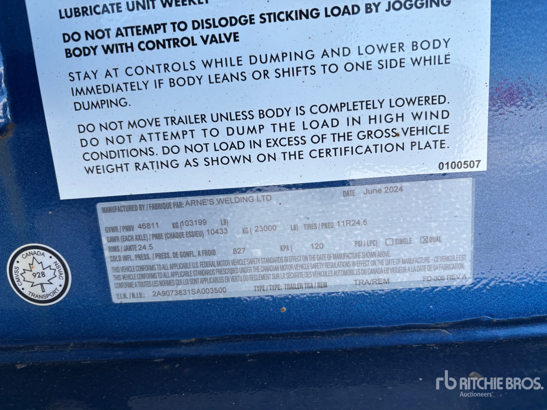 The detailed equipment information is limited in scope, and Ritchie Bros. Auctioneers has not inspected any aspects or components of the equipment other than those expressly set forth herein. Unless expressly stated, we make no representations or warranties, express or implied, concerning the equipment or its components, including without limitation any representations or warranties concerning functionality, conformity or compliance with any safety standard or requirement of any applicable authority or regulatory body, fitness for any particular purpose, or merchantability. You are strongly advised to perform your own detailed inspection of the equipment prior to bidding.