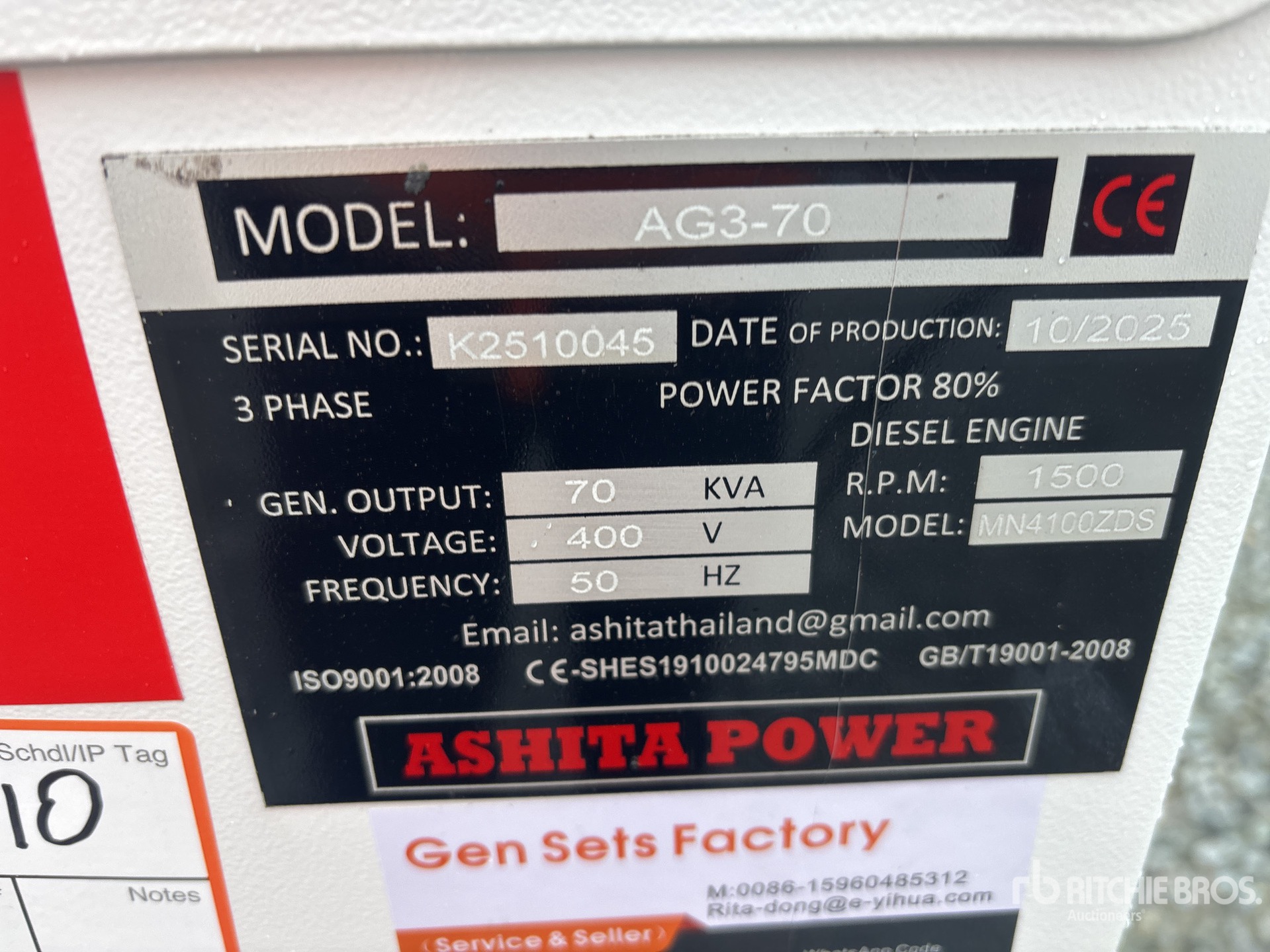 2025 Ashita AG3-70 Skid-Mounted Generator Set (Unused)