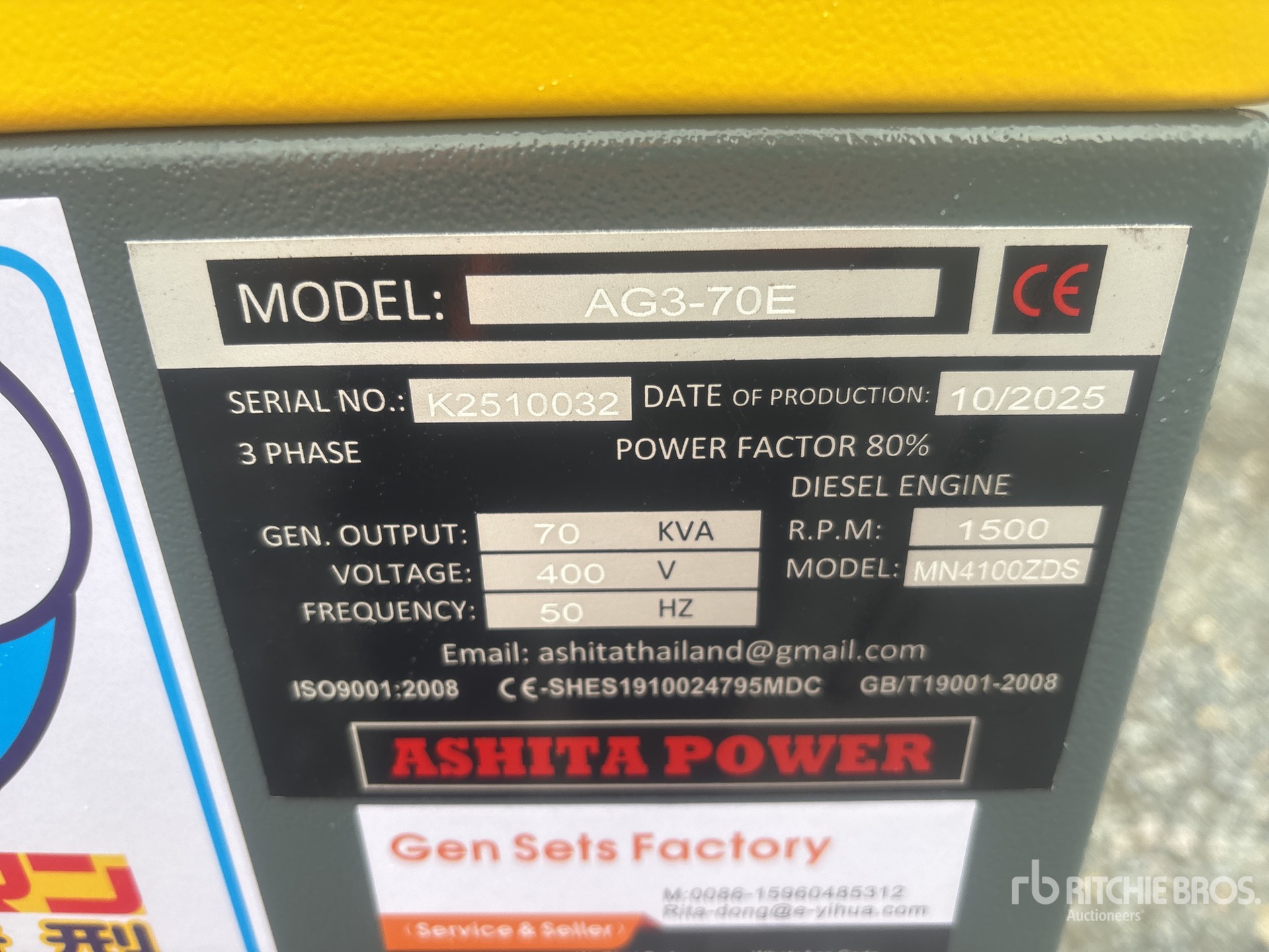 2025 Ashita AG3-70E Generator Set (Unused)
