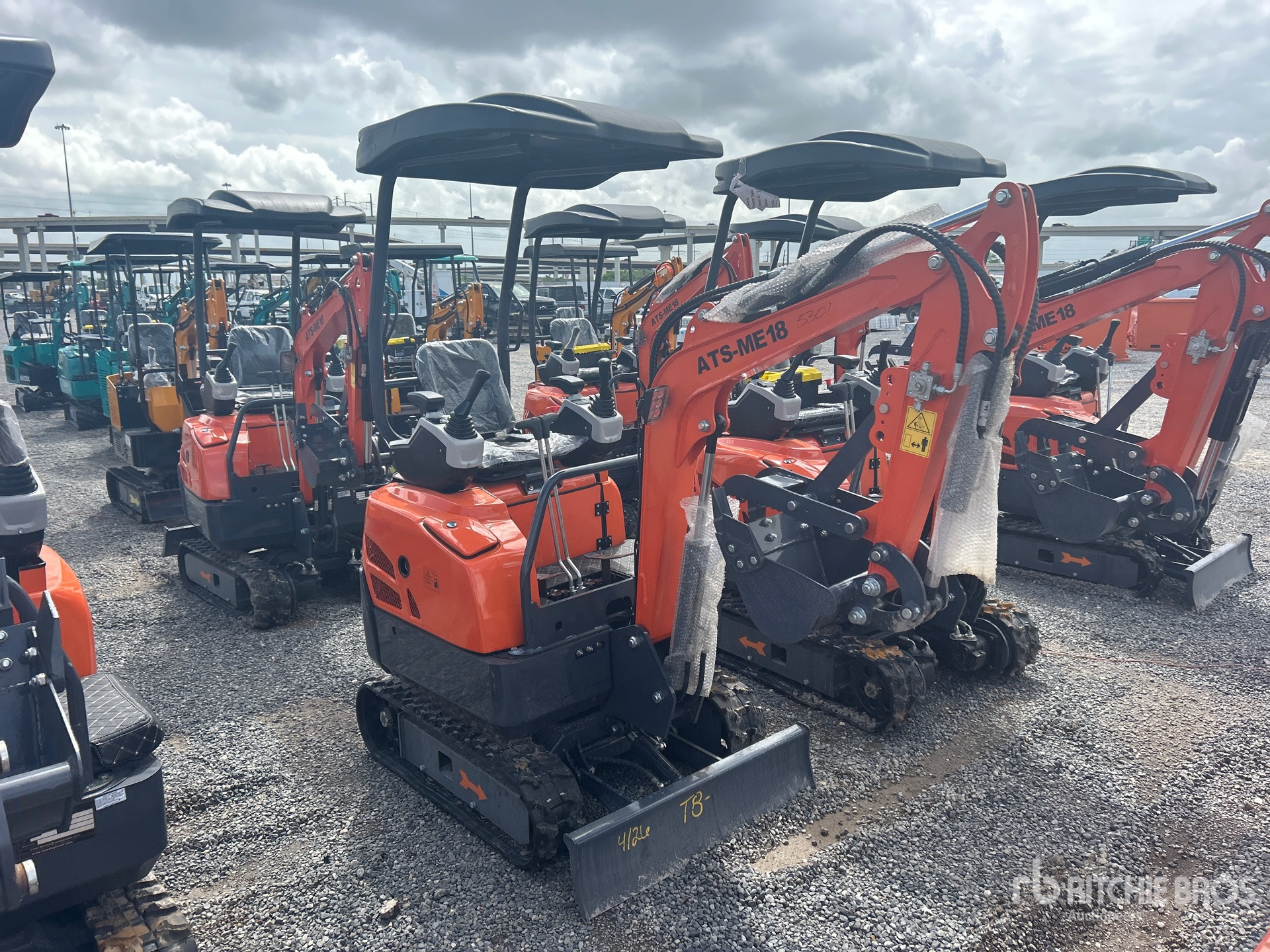 2025 US EPA Label, 2 ft 7 in Stick, Auxiliary Hydraulic Plumbing, Backfill Blade, 7 in Rubber Tracks, 16 in Digging Bucket, Manual Thumb, Item is new/unused
