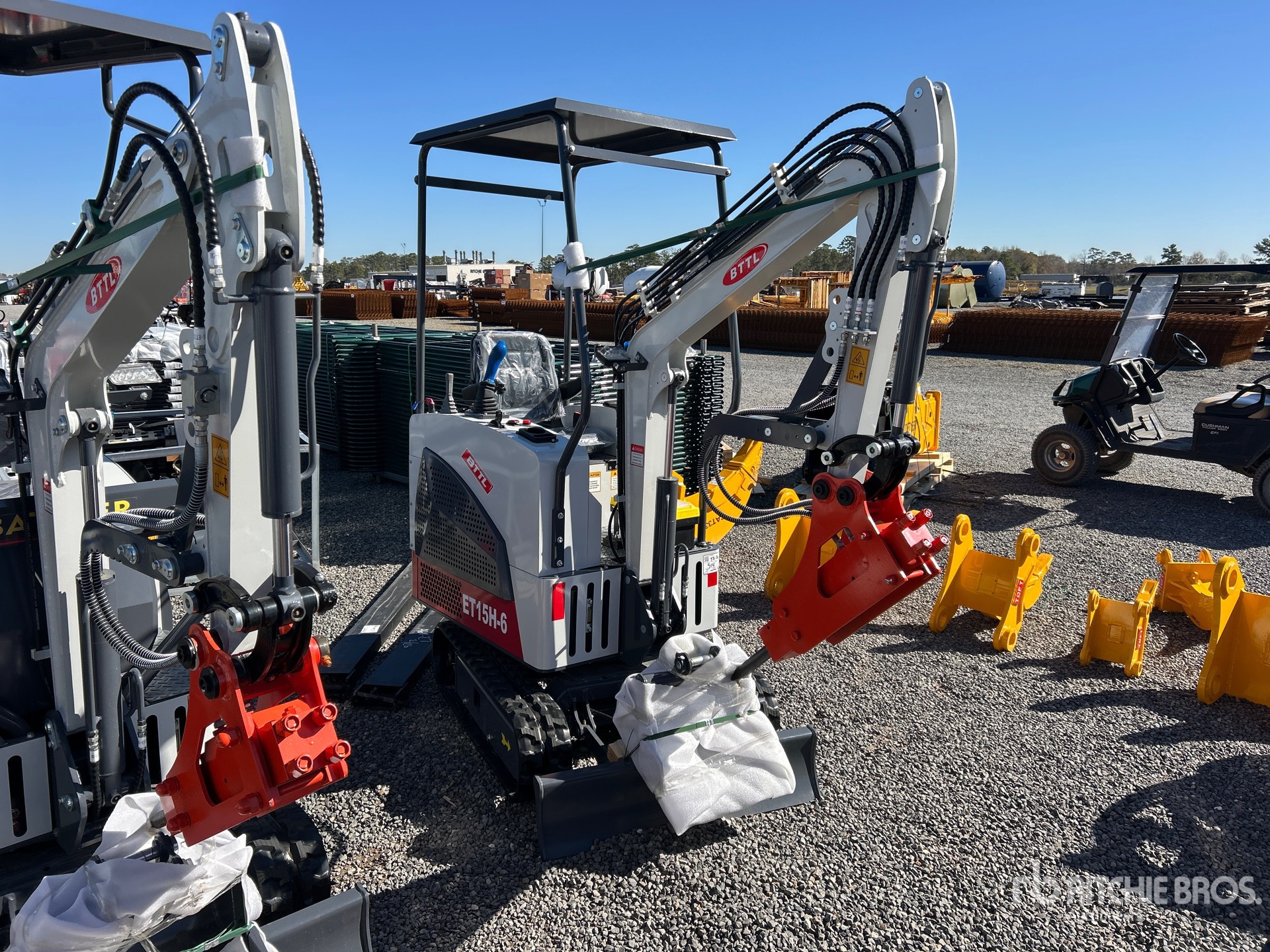 2 ft 10 in Stick, Auxiliary Hydraulic Plumbing, Backfill Blade, 7 in Rubber Tracks, 16 in Digging Bucket, Manual Thumb, Hydraulic Breaker
