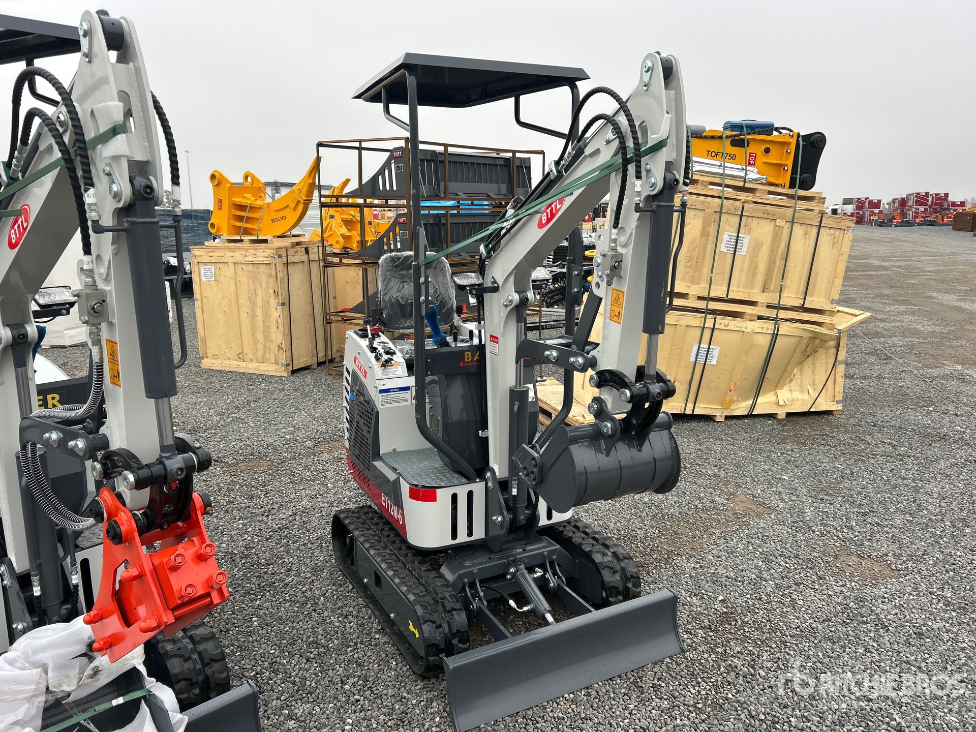 2 ft 7 in Stick, Auxiliary Hydraulic Plumbing, Backfill Blade, 7 in Rubber Tracks
