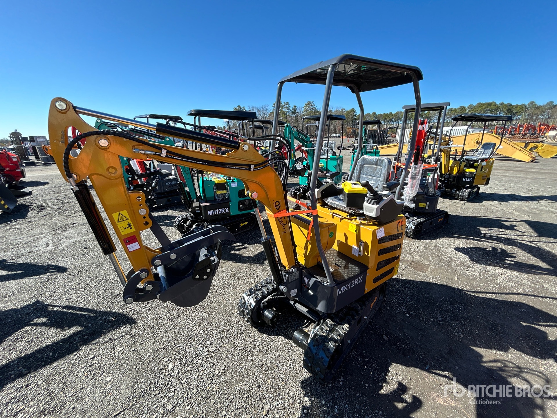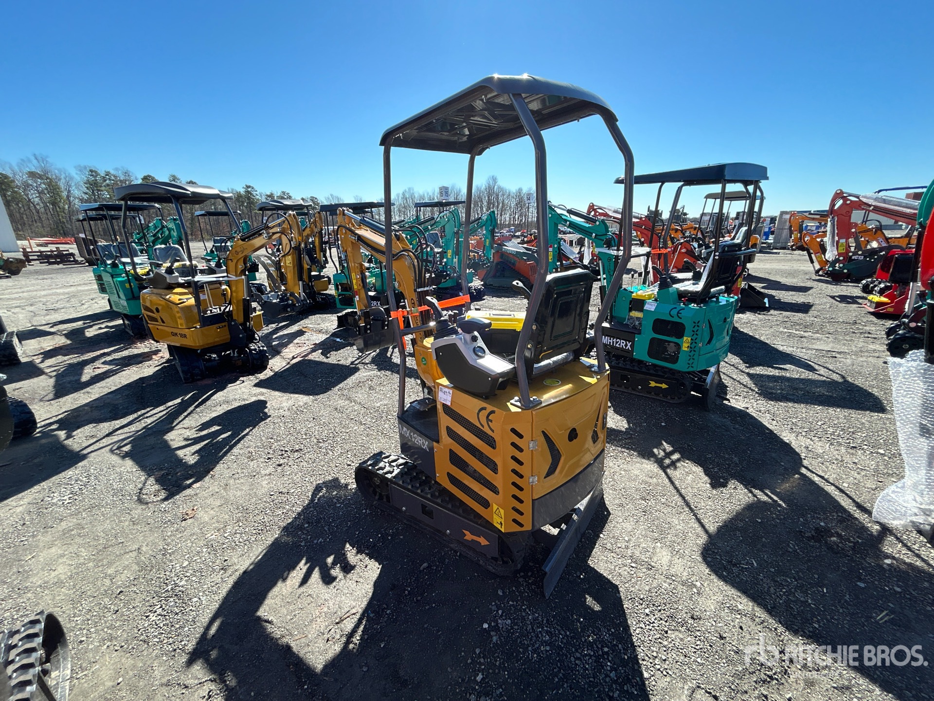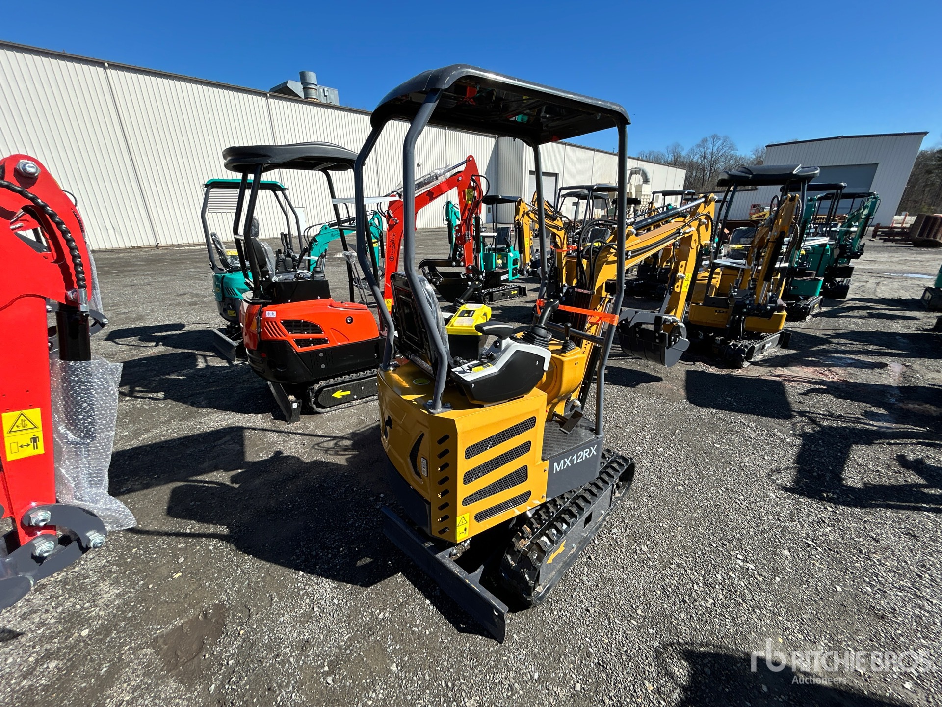 Located in Lane 17 Spot 18, 2025 US EPA Label, 2 ft 8 in Stick, Backfill Blade, 7 in Rubber Tracks, Manual Quick Coupler, 16 in Cleanup Bucket, Manual Thumb