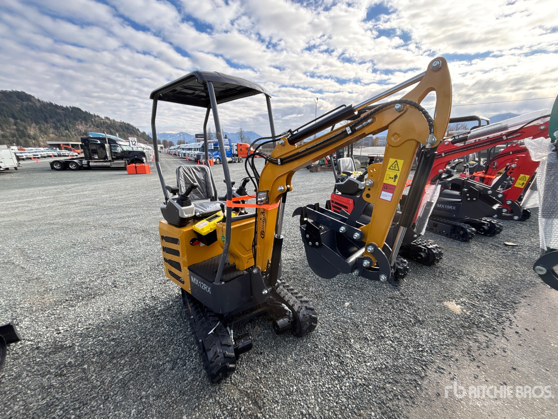 2025 US EPA Label, 3 ft Stick, Backfill Blade, 7 in Rubber Tracks, 14 in Digging Bucket, Manual Thumb
