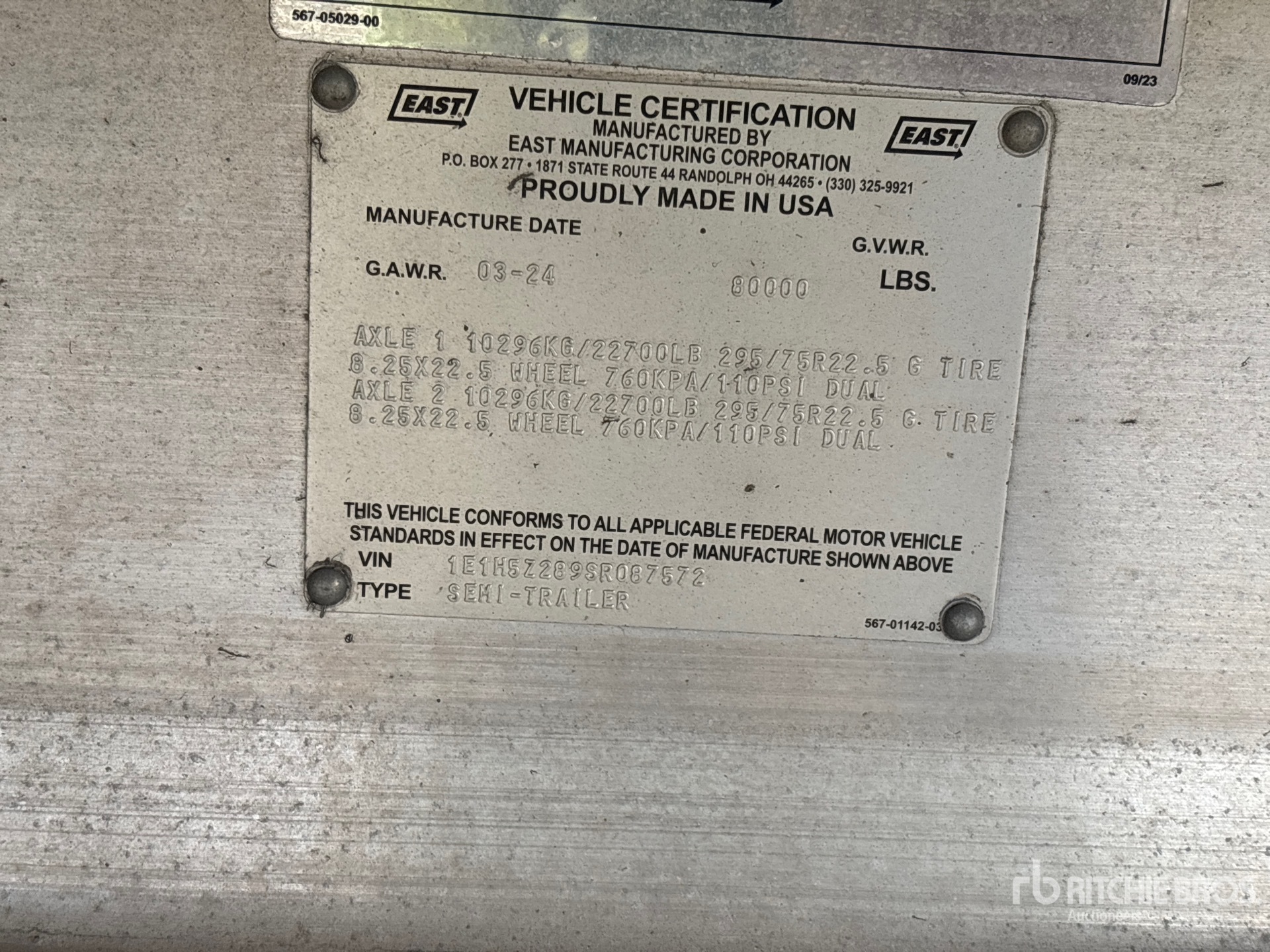 Aluminum Frame, Air Ride Suspension, 97 in Deck Width, 101 in Overall Width, Aluminum w/Wood Strips Flooring, Aluminum Outer Wheels, 295/75R22.5 Tires, 80000 lb GVWR