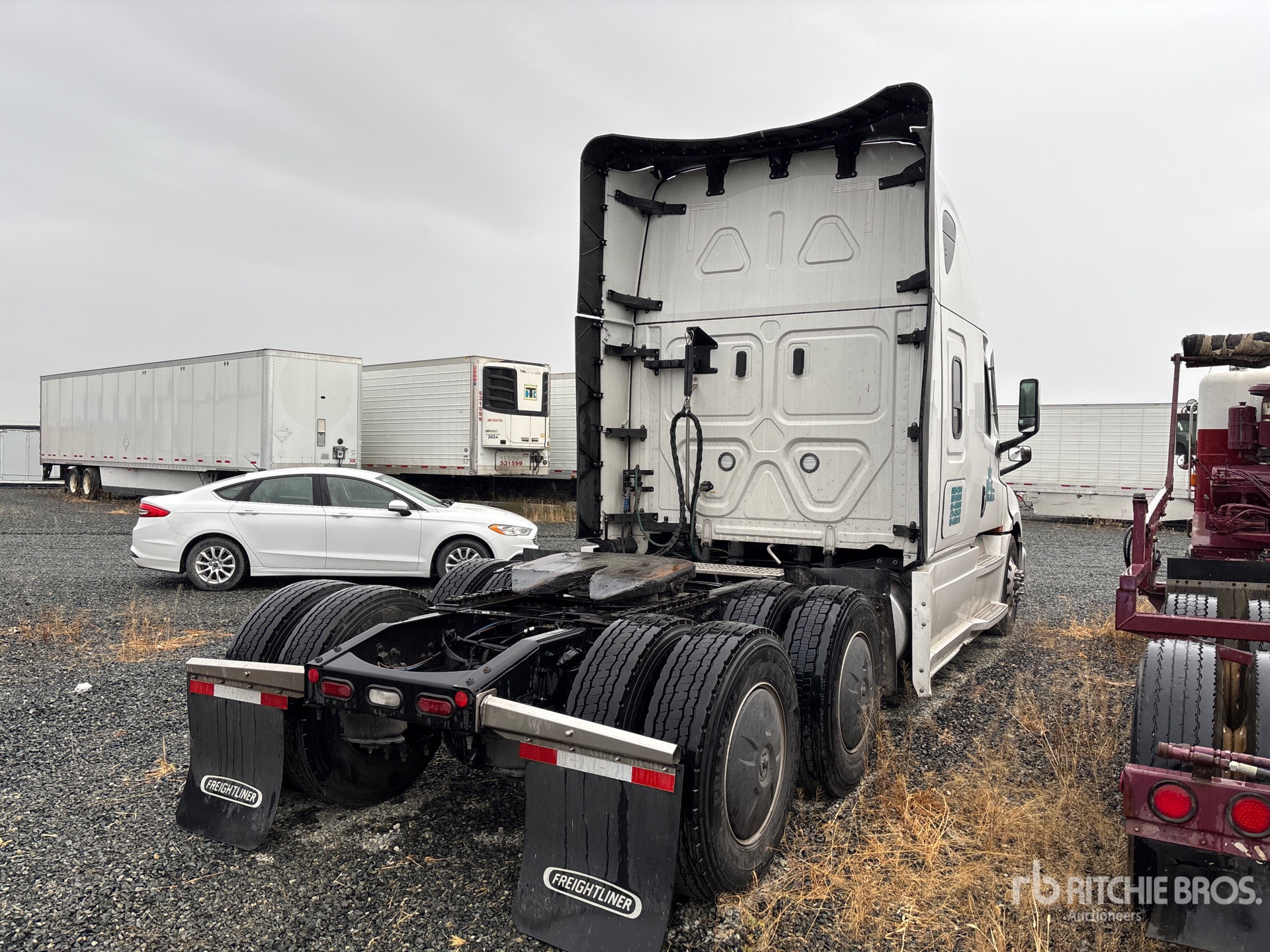 Detroit DD13 450 hp Engine, Detroit DT12-1750-OHE 13300 lb Front Axle, 40000 lb Rears, 53300 lb GVWR, Engine Brake, 72 in High Rise Sleeper Cab, Bunk Beds, 235 in Wheelbase, Air Suspension, Aluminum Outer Wheels, 295/75R22.5, Air Sliding 5th Wheel, Dual Fuel Tanks