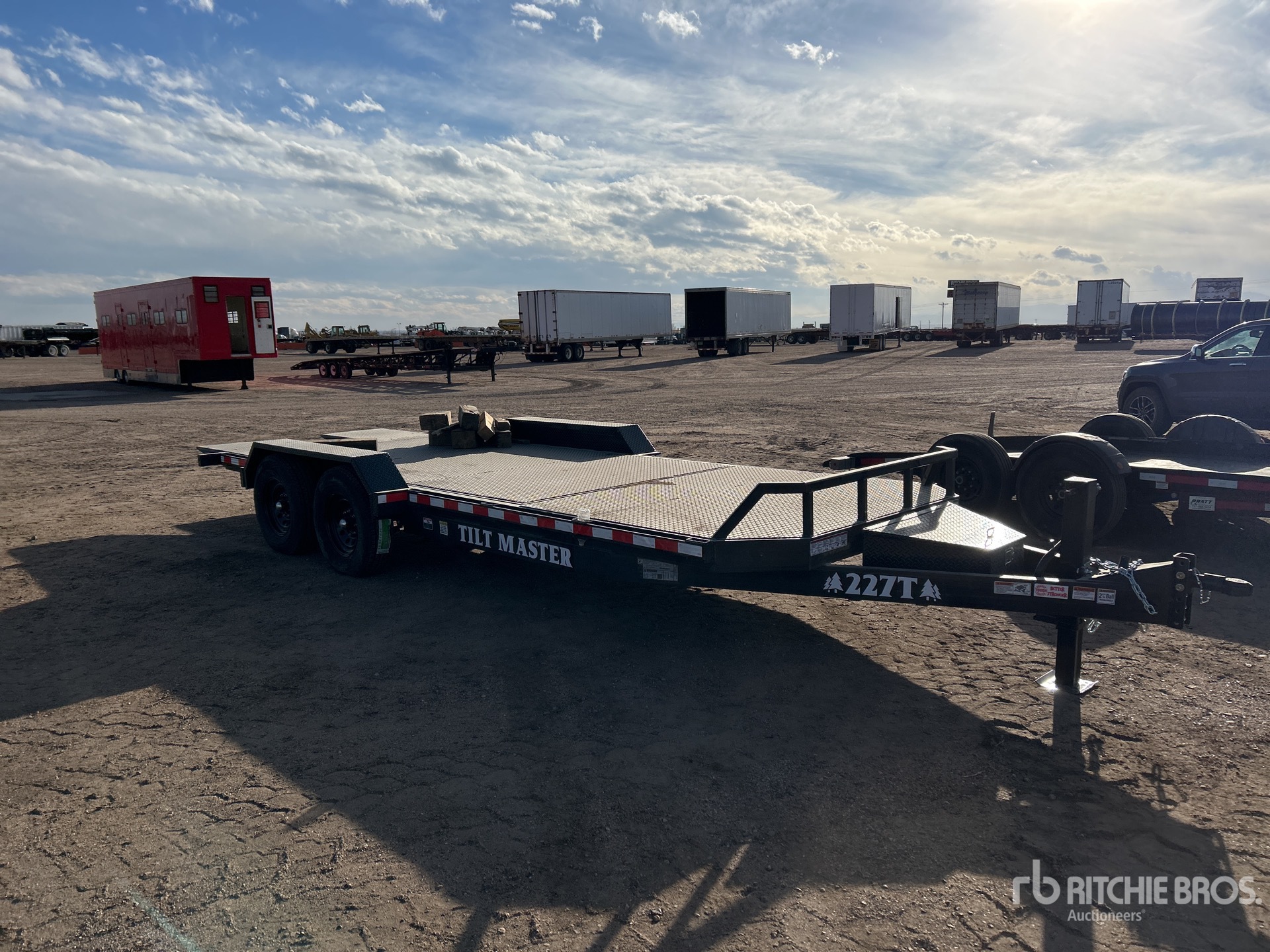 Ball Hitch, Spring Suspension, Electric Brakes, Storage Compartments, 15 ft 11 in Deck Tilting Length, 77 in Deck Width, 14000 lb GVWR