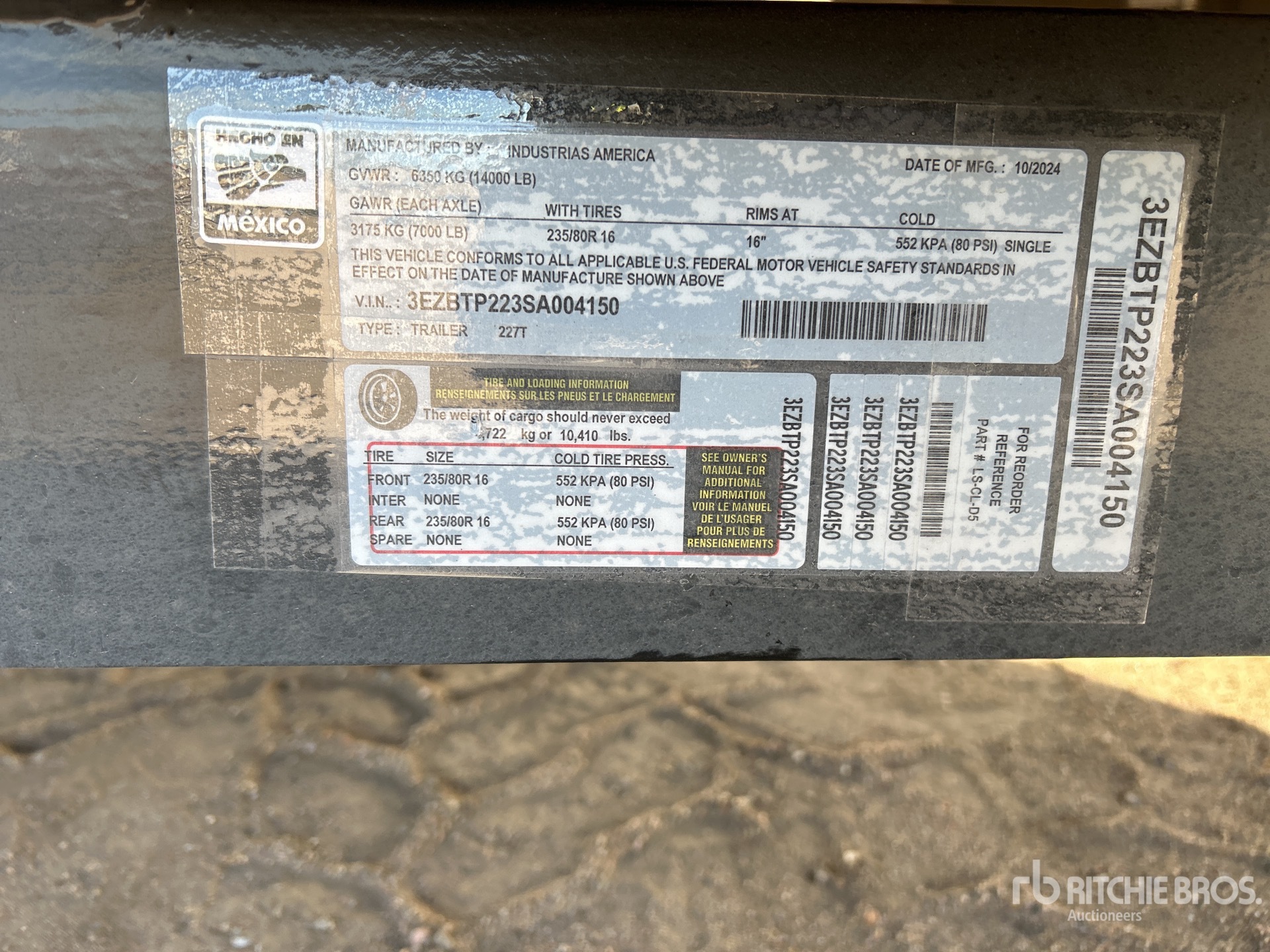 The detailed equipment information is limited in scope, and Ritchie Bros. Auctioneers has not inspected any aspects or components of the equipment other than those expressly set forth herein. Unless expressly stated, we make no representations or warranties, express or implied, concerning the equipment or its components, including without limitation any representations or warranties concerning functionality, conformity or compliance with any safety standard or requirement of any applicable authority or regulatory body, fitness for any particular purpose, or merchantability. You are strongly advised to perform your own detailed inspection of the equipment prior to bidding.