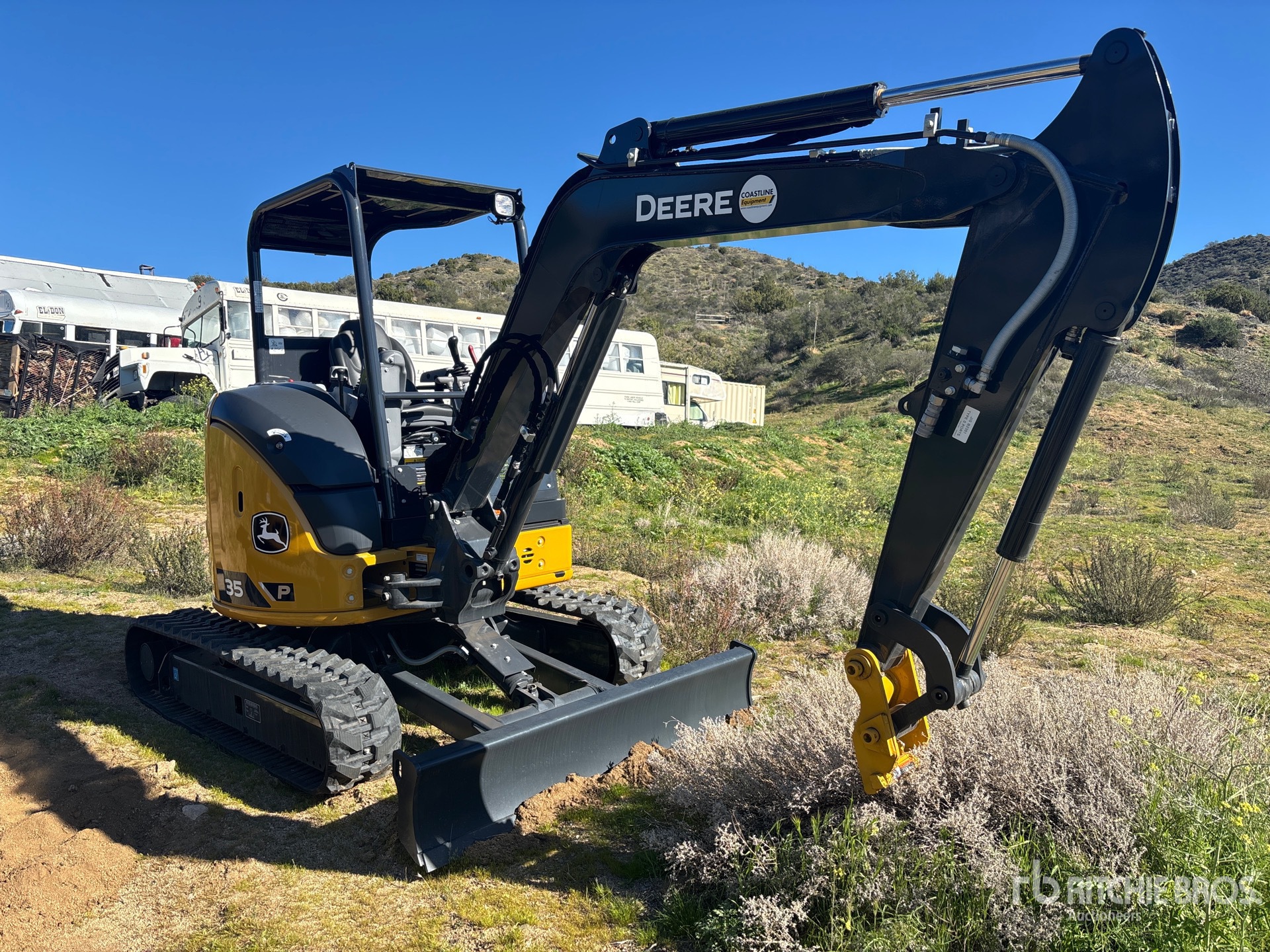 Control Pattern Changer, 2024 US EPA Label, Swing Boom, 4 ft 4 in Stick, Auxiliary Hydraulic Plumbing, Backfill Blade, 12 in Rubber Tracks, Manual Quick Coupler