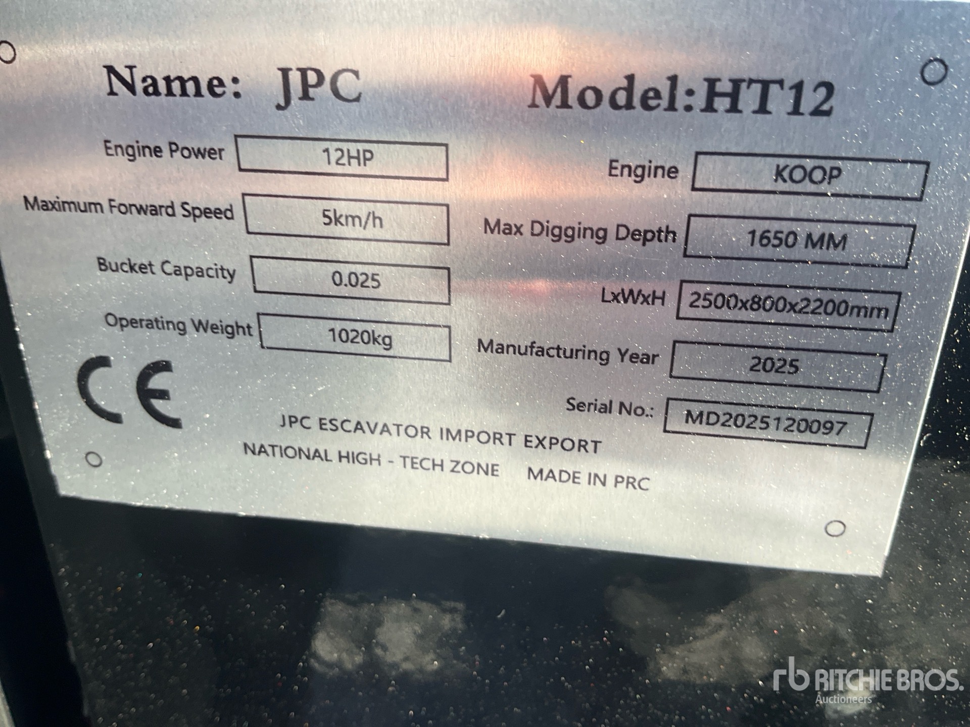 2025 JPC HT12 Mini Excavator (Unused)