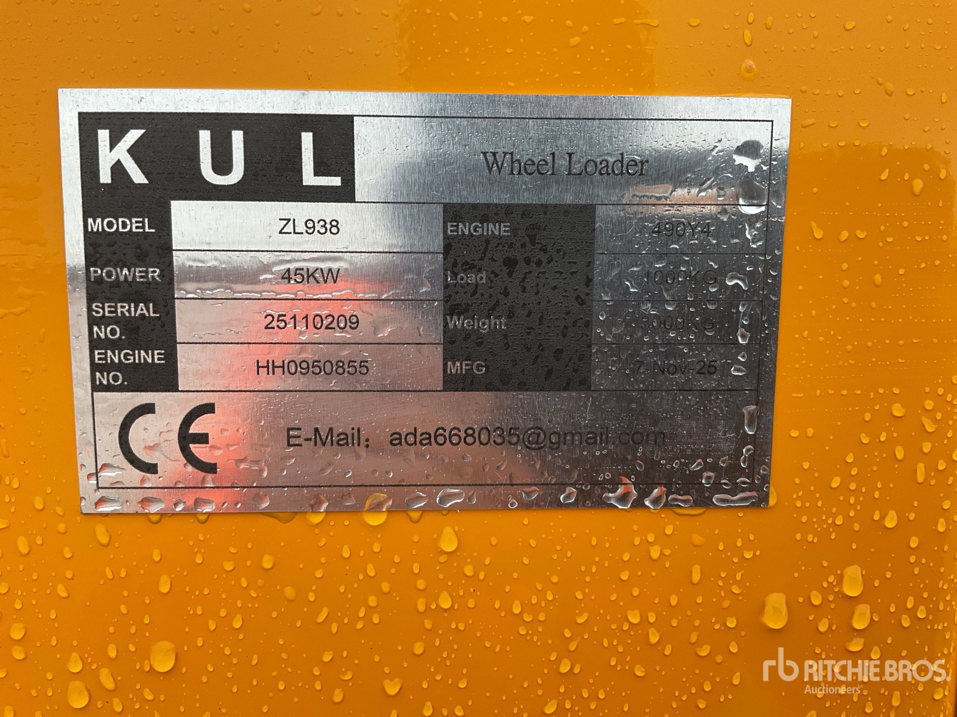 2025 KUL ZL938 Wheel Loader (Unused)