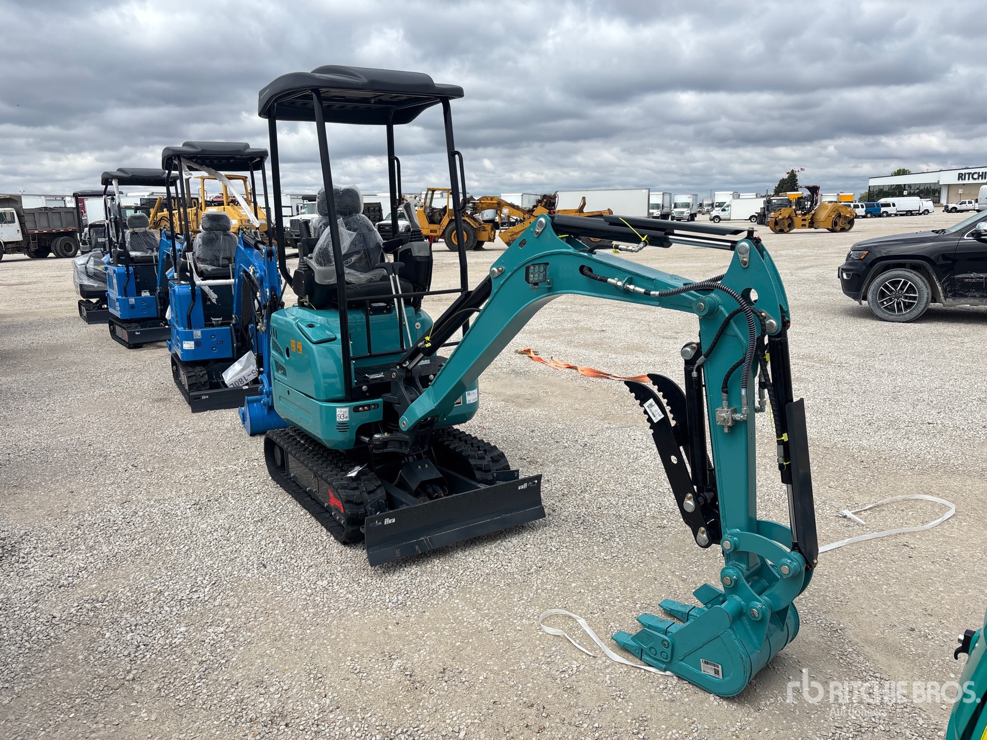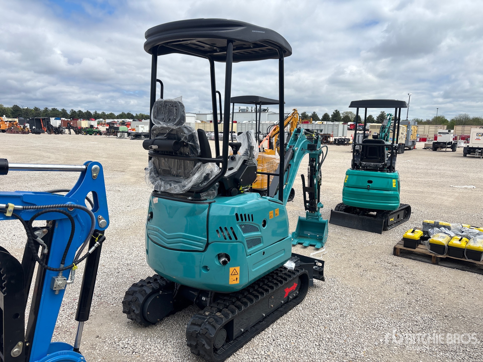 Swing Boom, 3 ft 1 in Stick, Auxiliary Hydraulic Plumbing, Backfill Blade, 9 in Rubber Tracks, 18 in Digging Bucket, Hydraulic Thumb
