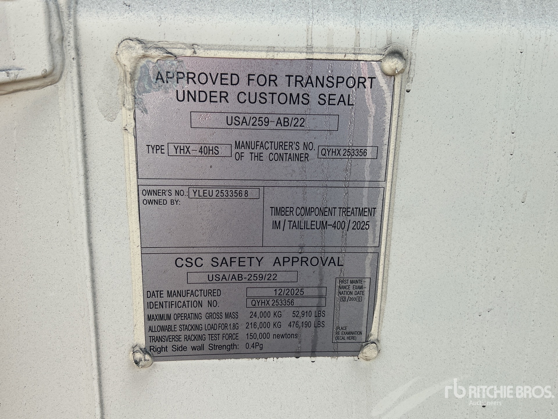 The detailed equipment information is limited in scope, and Ritchie Bros. Auctioneers has not inspected any aspects or components of the equipment other than those expressly set forth herein. Unless expressly stated, we make no representations or warranties, express or implied, concerning the equipment or its components, including without limitation any representations or warranties concerning functionality, conformity or compliance with any safety standard or requirement of any applicable authority or regulatory body, fitness for any particular purpose, or merchantability. You are strongly advised to perform your own detailed inspection of the equipment prior to bidding.
