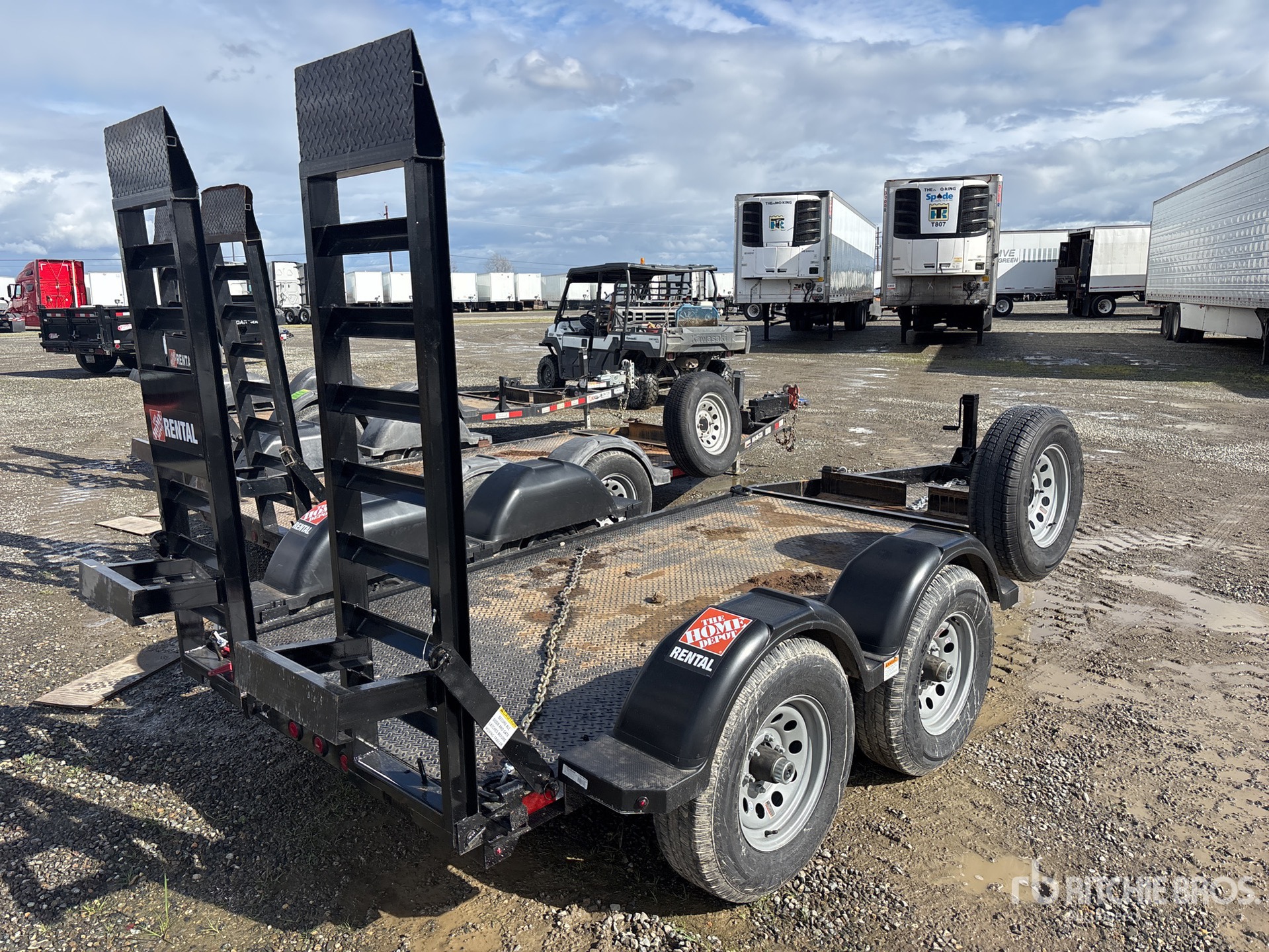 Ball Hitch, Spring Suspension, 10 ft Main Deck, 64 in Overall Deck Width, Manual Ramps, Steel Decking, 225/75R15 Tires, 7000 lb GVWR