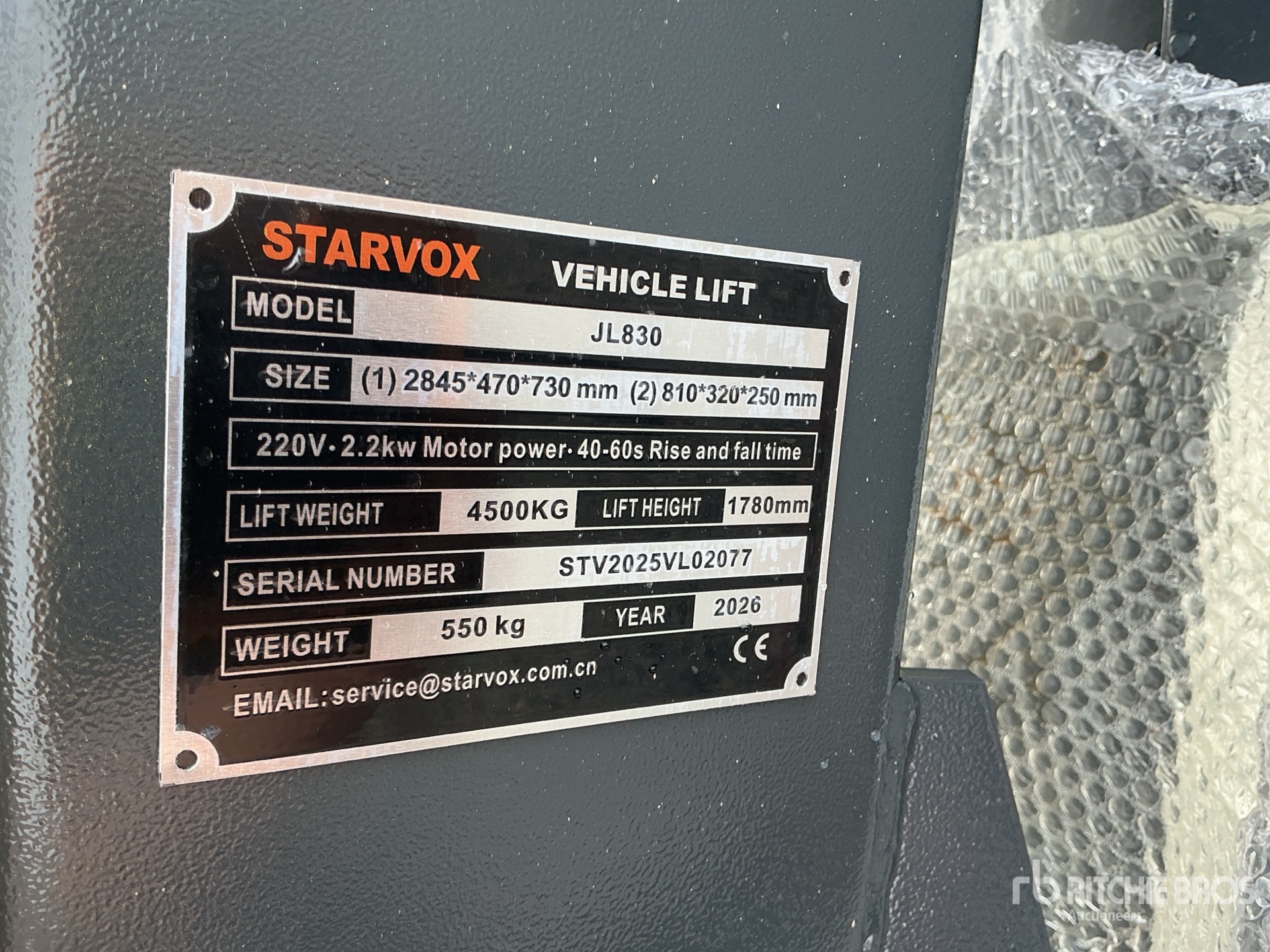 2025 STARVOX JL830 2 Post 10000 lb Vehicle Lift (Unused)