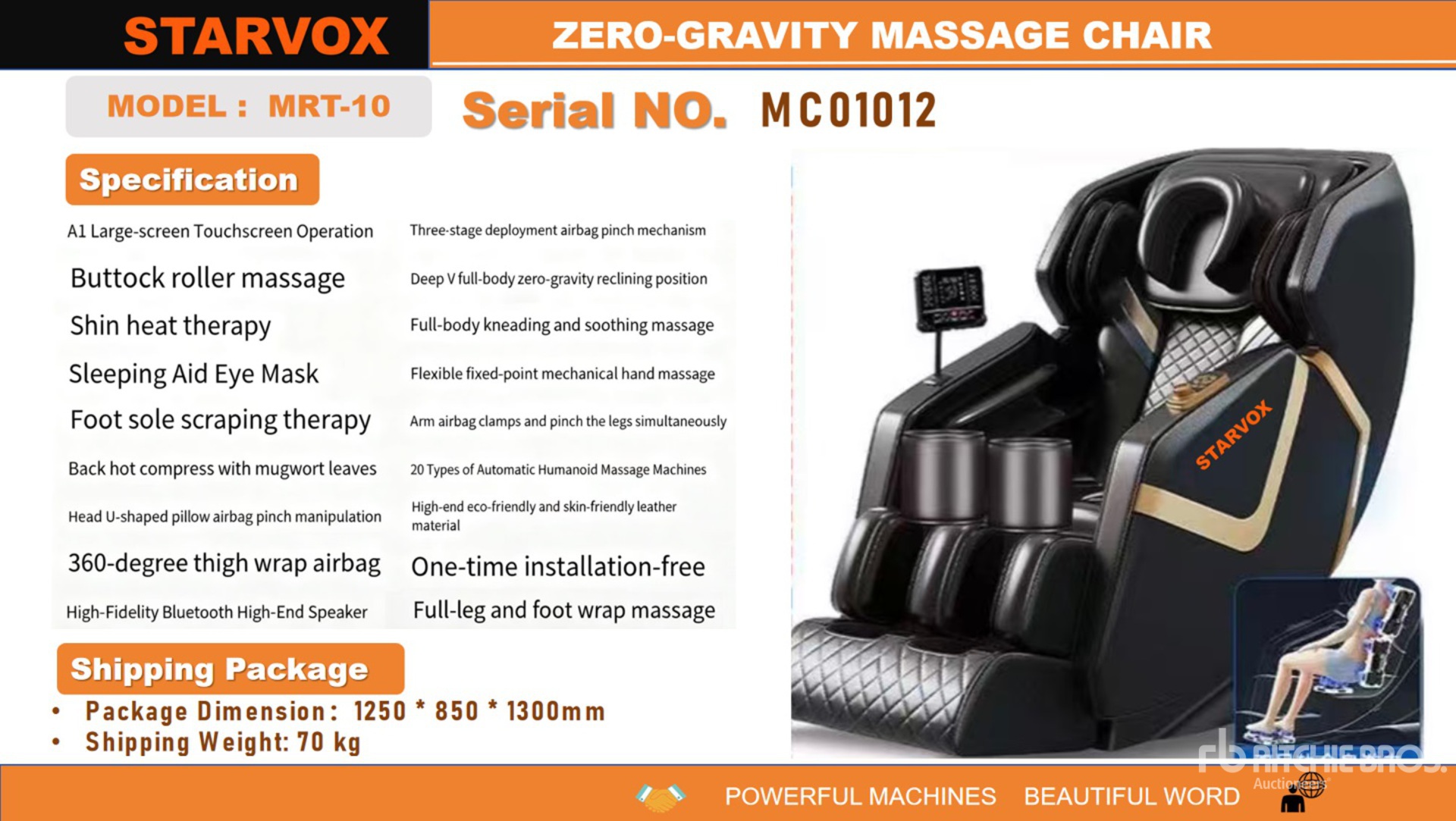 The detailed equipment information is limited in scope, and Ritchie Bros. Auctioneers has not inspected any aspects or components of the equipment other than those expressly set forth herein. Unless expressly stated, we make no representations or warranties, express or implied, concerning the equipment or its components, including without limitation any representations or warranties concerning functionality, conformity or compliance with any safety standard or requirement of any applicable authority or regulatory body, fitness for any particular purpose, or merchantability. You are strongly advised to perform your own detailed inspection of the equipment prior to bidding.