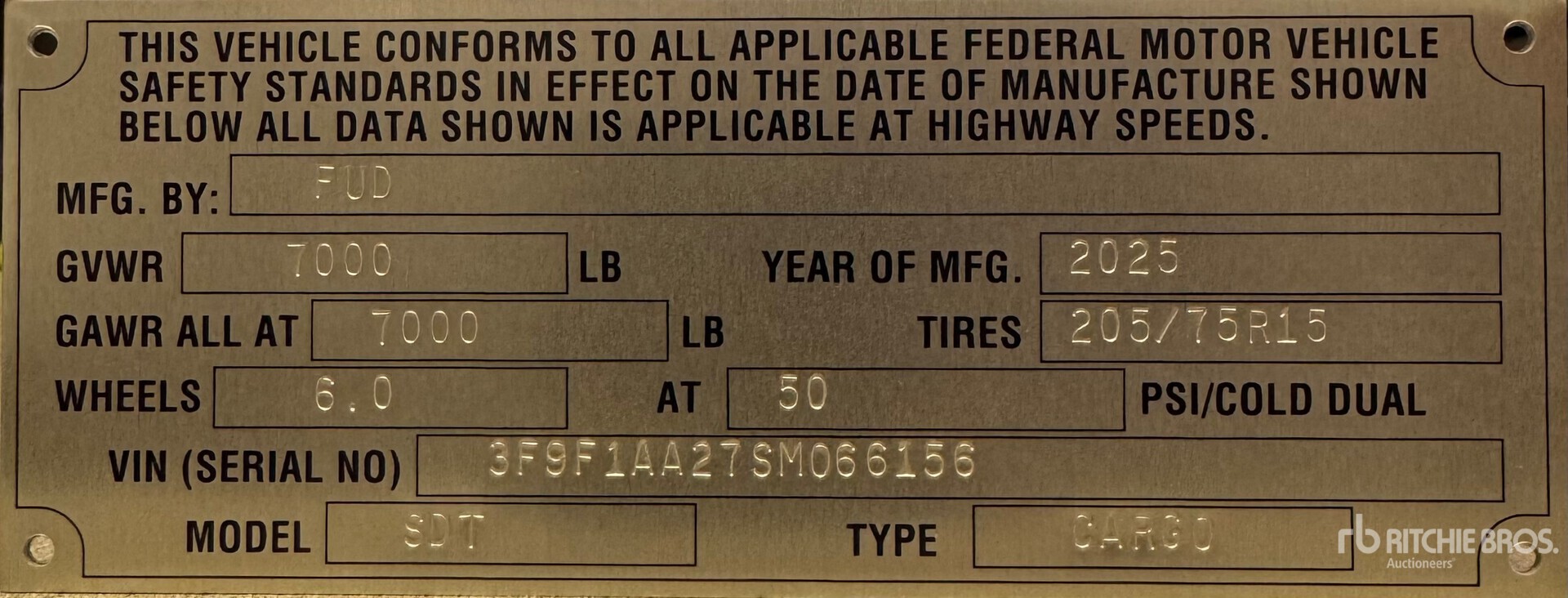 3F9F1AA27SM066156, No serial number or manufacturer’s identifying number found. This unit may be difficult to export.