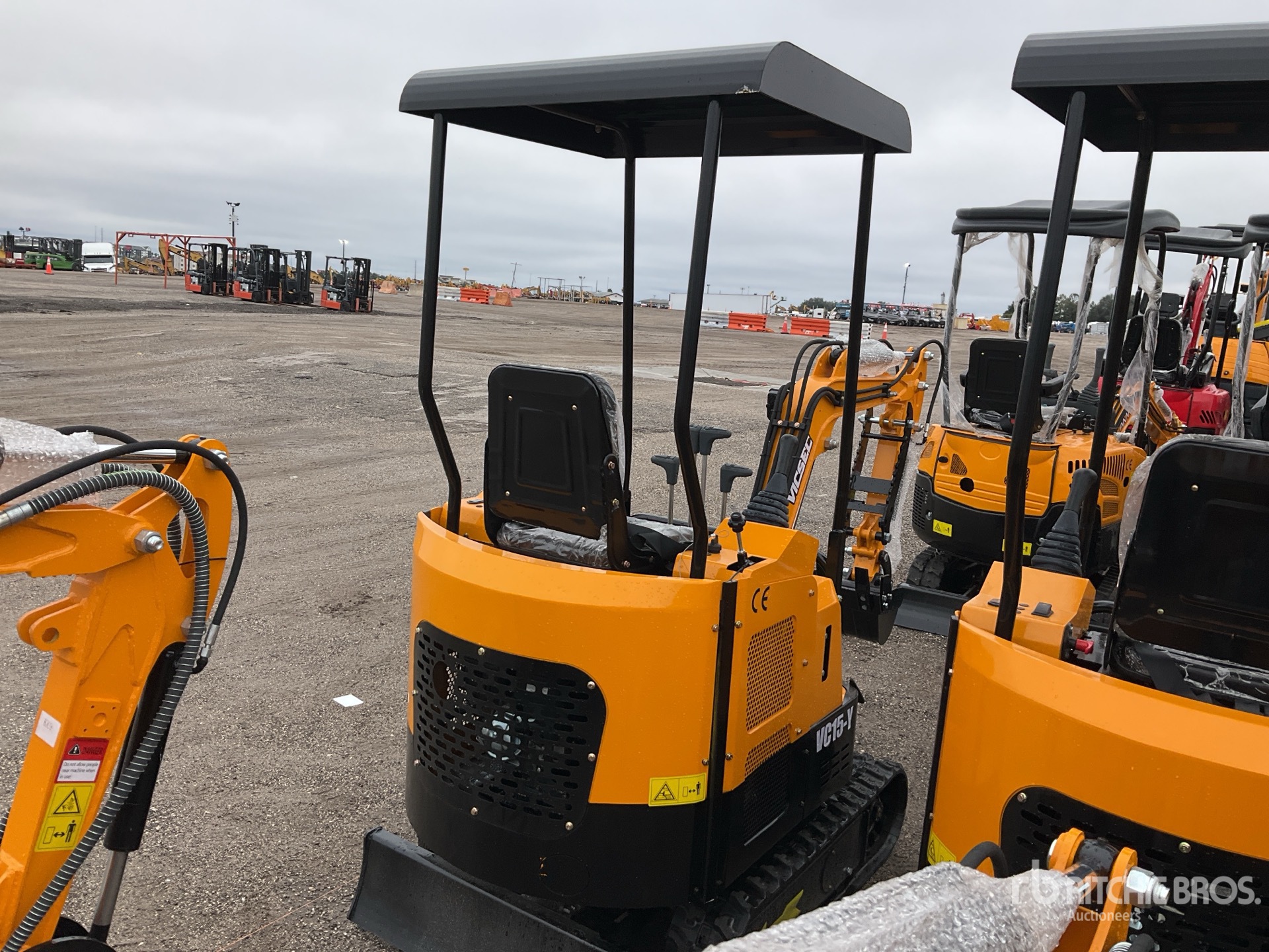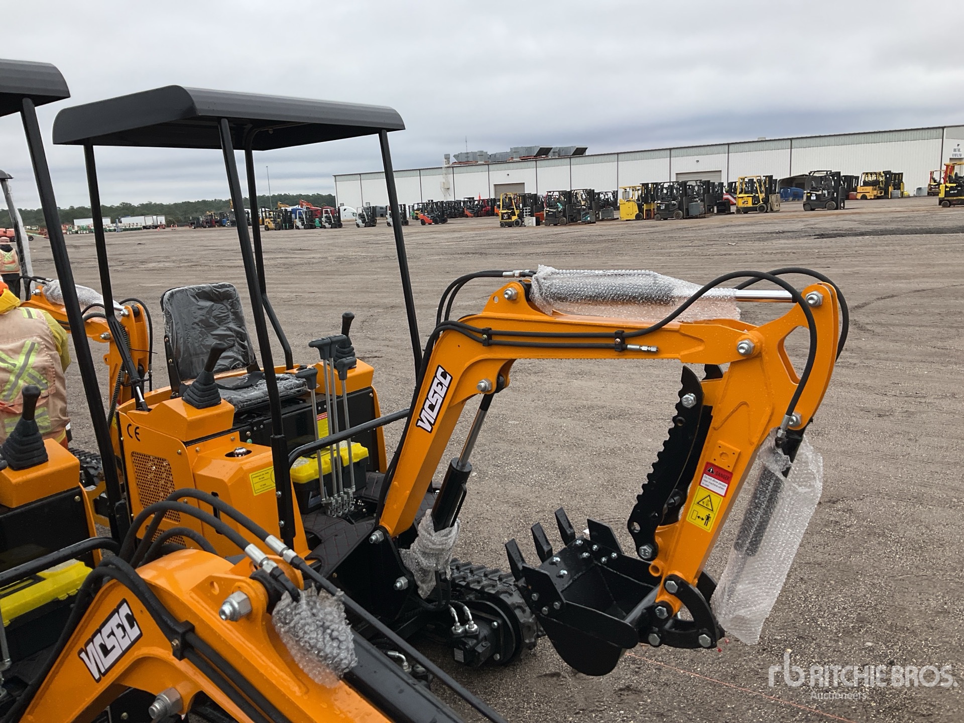 2 ft 7 in Stick, Auxiliary Hydraulic Plumbing, Backfill Blade, 7 in Rubber Tracks, 14 in Digging Bucket, Manual Thumb