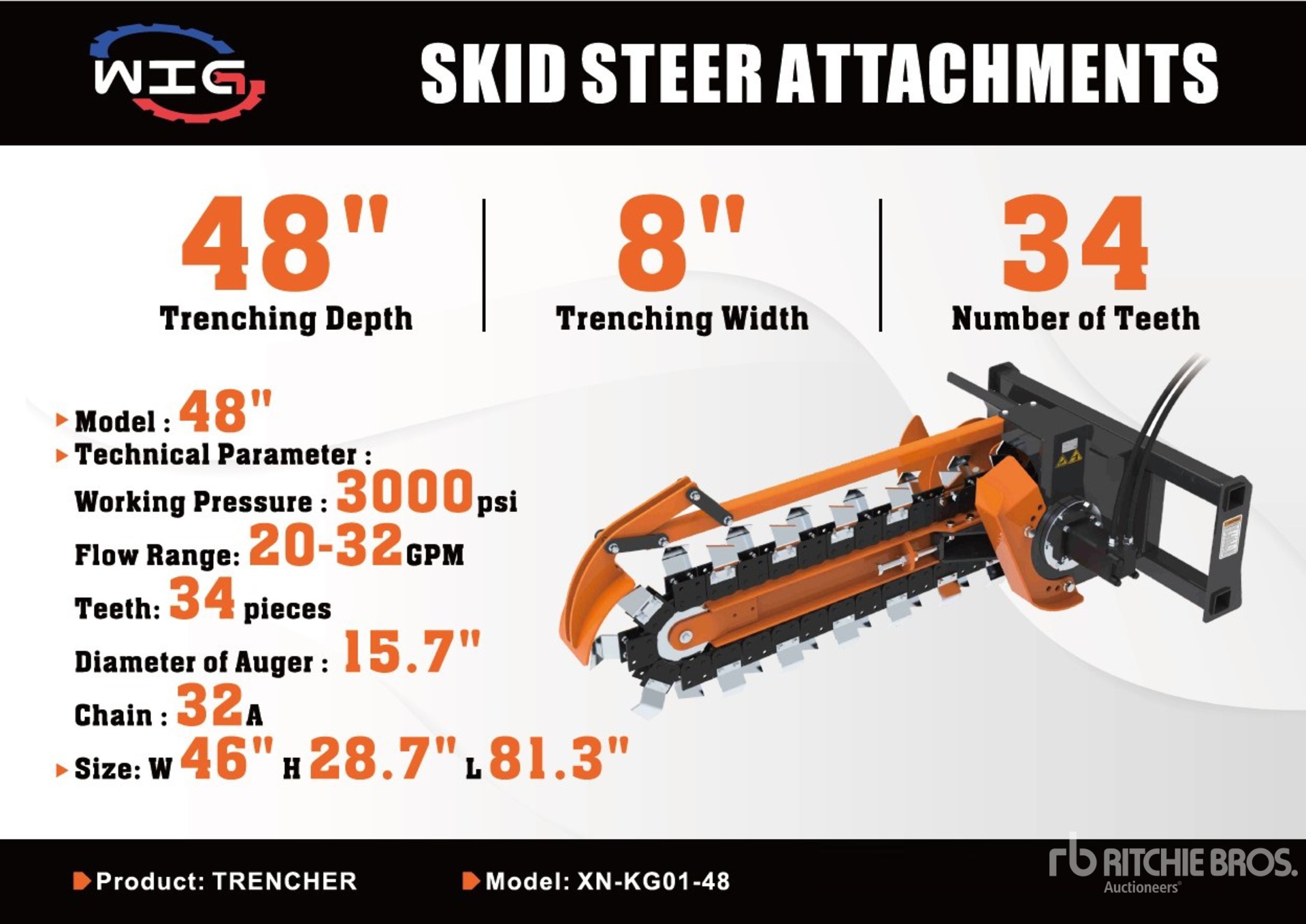 The detailed equipment information is limited in scope, and Ritchie Bros. Auctioneers has not inspected any aspects or components of the equipment other than those expressly set forth herein. Unless expressly stated, we make no representations or warranties, express or implied, concerning the equipment or its components, including without limitation any representations or warranties concerning functionality, conformity or compliance with any safety standard or requirement of any applicable authority or regulatory body, fitness for any particular purpose, or merchantability. You are strongly advised to perform your own detailed inspection of the equipment prior to bidding.