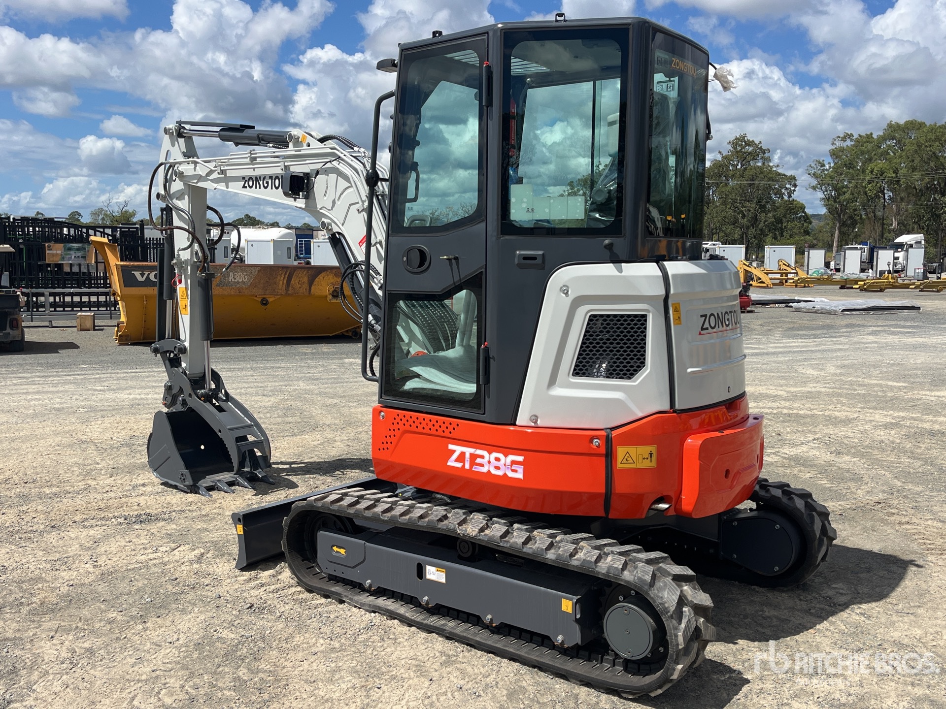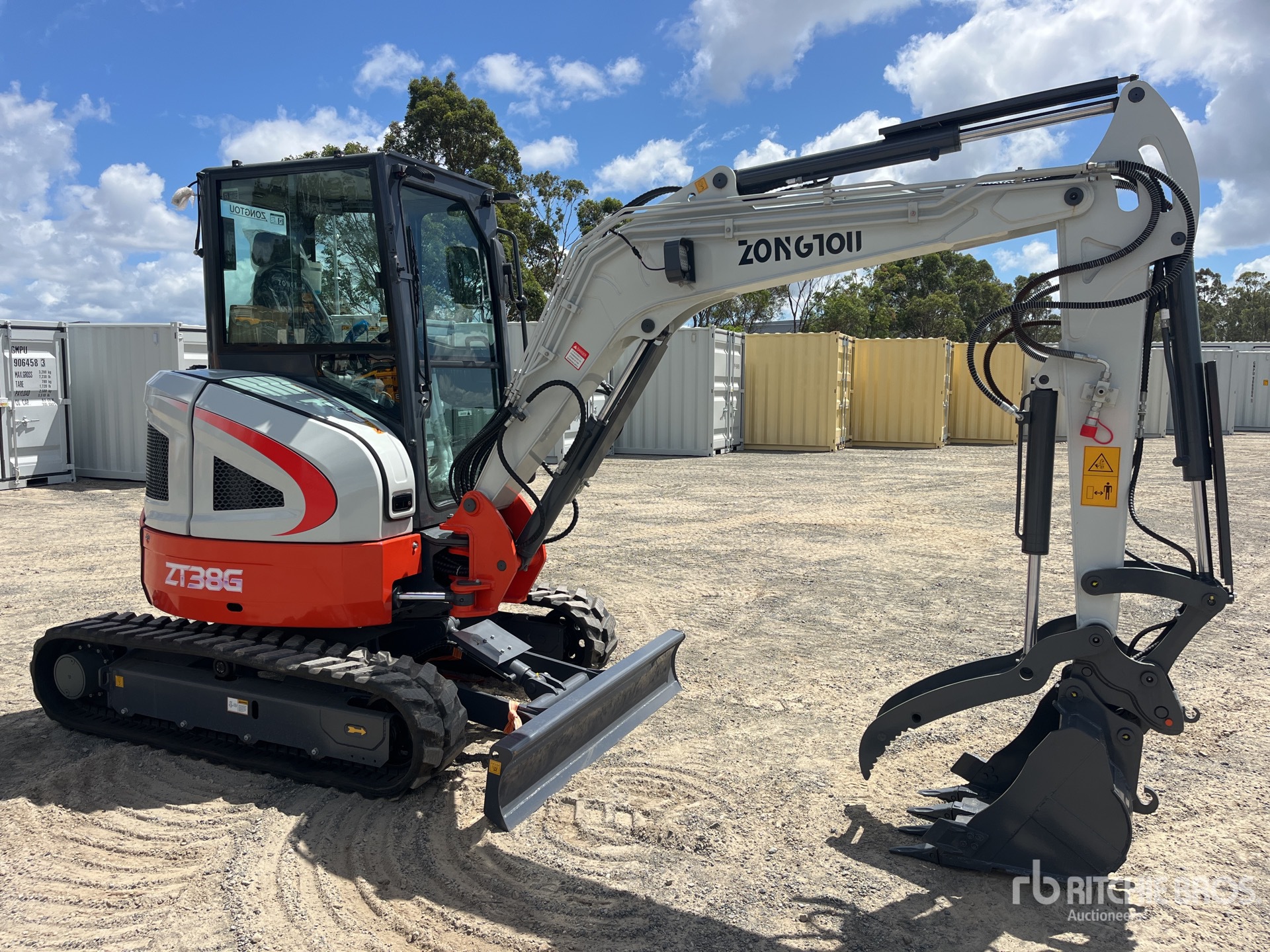 Enclosed Cab, Air Conditioner, Swing Boom, 1220 mm Stick, Auxiliary Hydraulic Plumbing, Boom Check Valves, Backfill Blade, 300 mm Rubber Tracks, Hydraulic Quick Coupler, 600 mm Digging Bucket, Hydraulic Thumb
