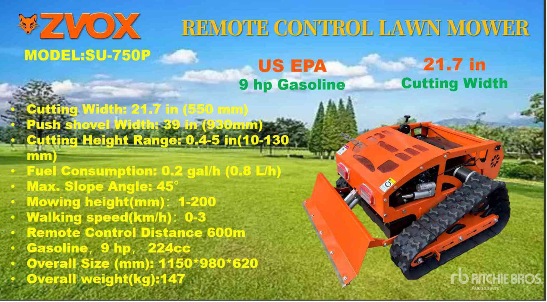 2025 ZVOX SU-750P REMOTE CONTROL Lawn Mower (Unused)