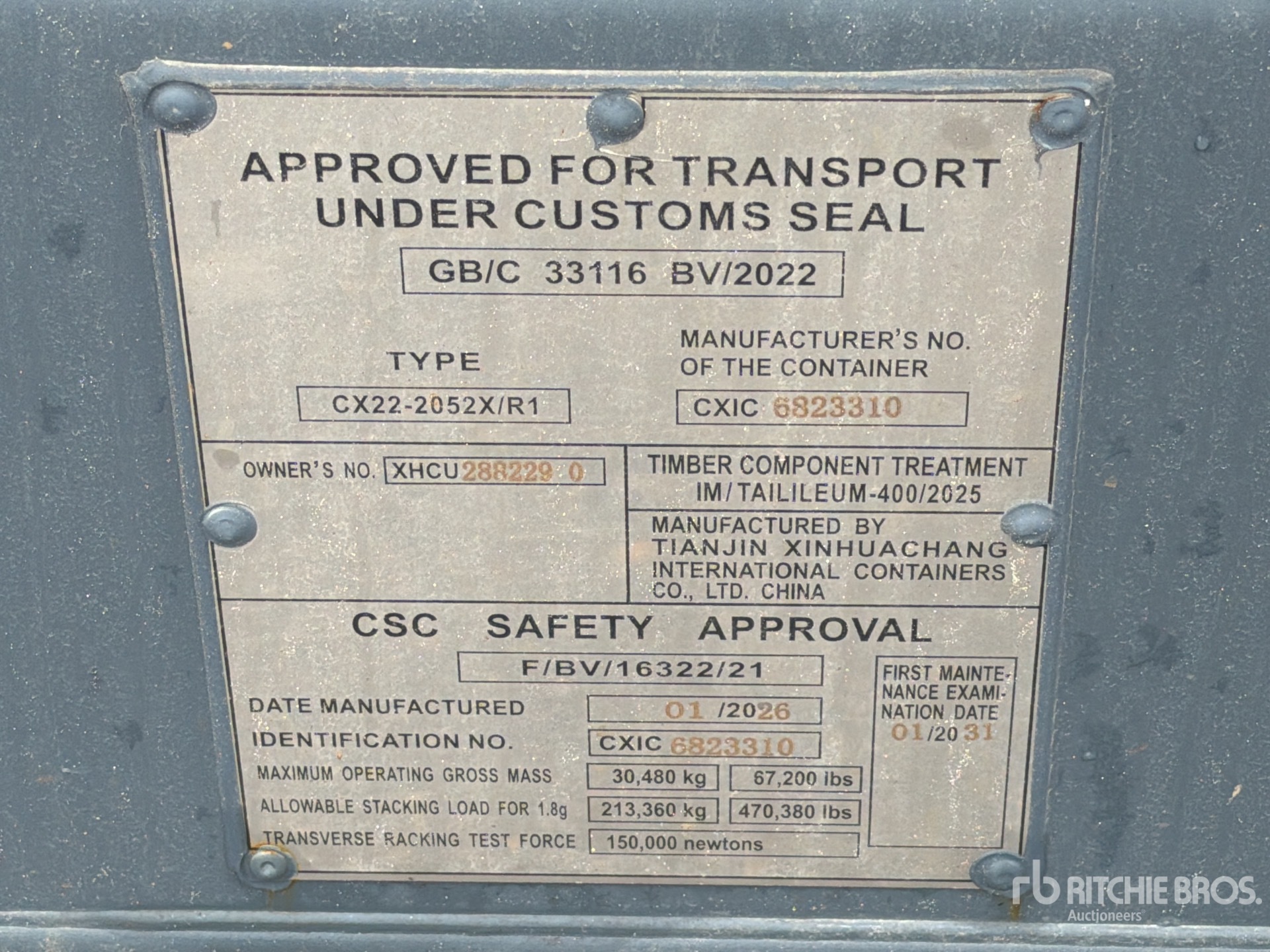A qualified Ritchie Bros. employee collected detailed equipment information and performed functional tests on the key components of this asset. You, or a proxy, may also inspect any items on site prior to bidding on auction day.