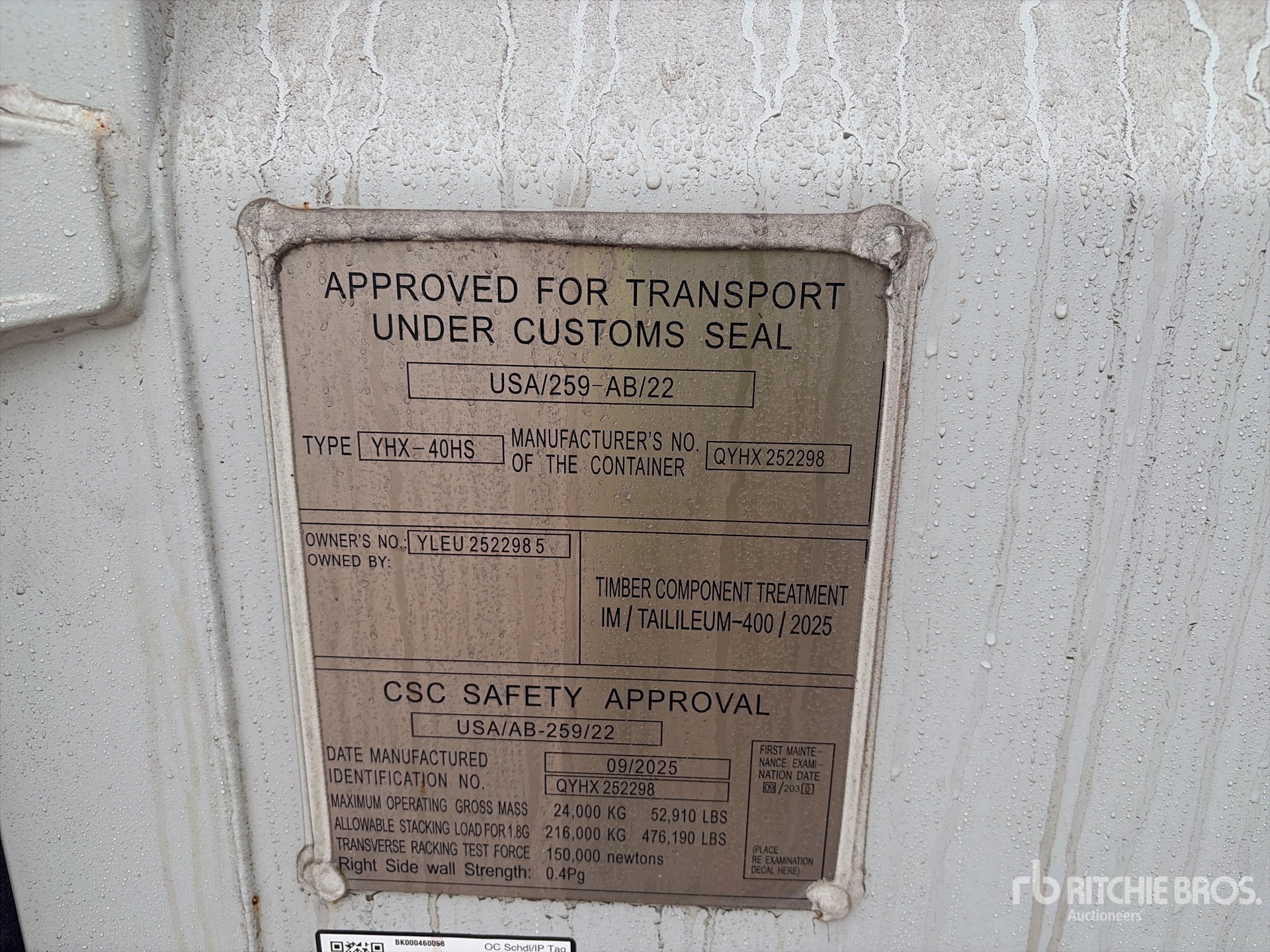 A qualified Ritchie Bros. employee collected detailed equipment information and performed functional tests on the key components of this asset. You, or a proxy, may also inspect any items on site prior to bidding on auction day.