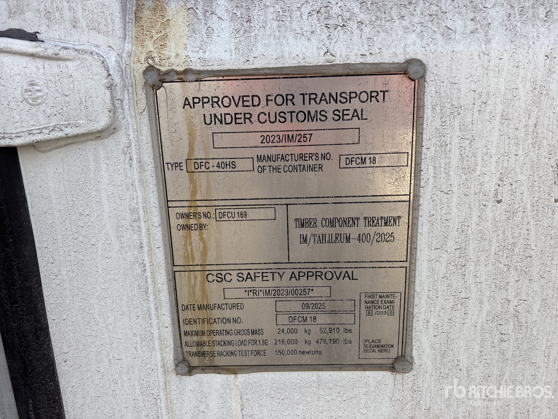 A qualified Ritchie Bros. employee collected detailed equipment information and performed functional tests on the key components of this asset. You, or a proxy, may also inspect any items on site prior to bidding on auction day.
