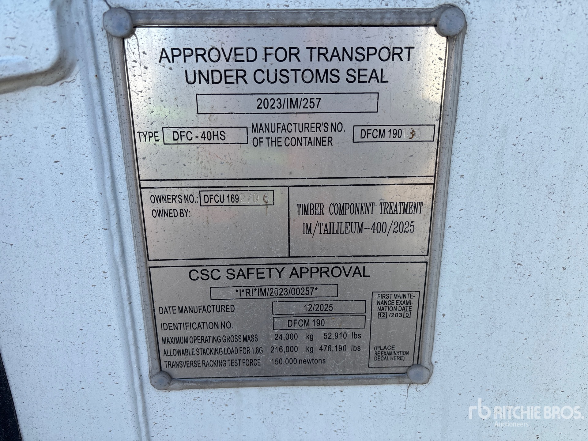 A qualified Ritchie Bros. employee collected detailed equipment information and performed functional tests on the key components of this asset. You, or a proxy, may also inspect any items on site prior to bidding on auction day.