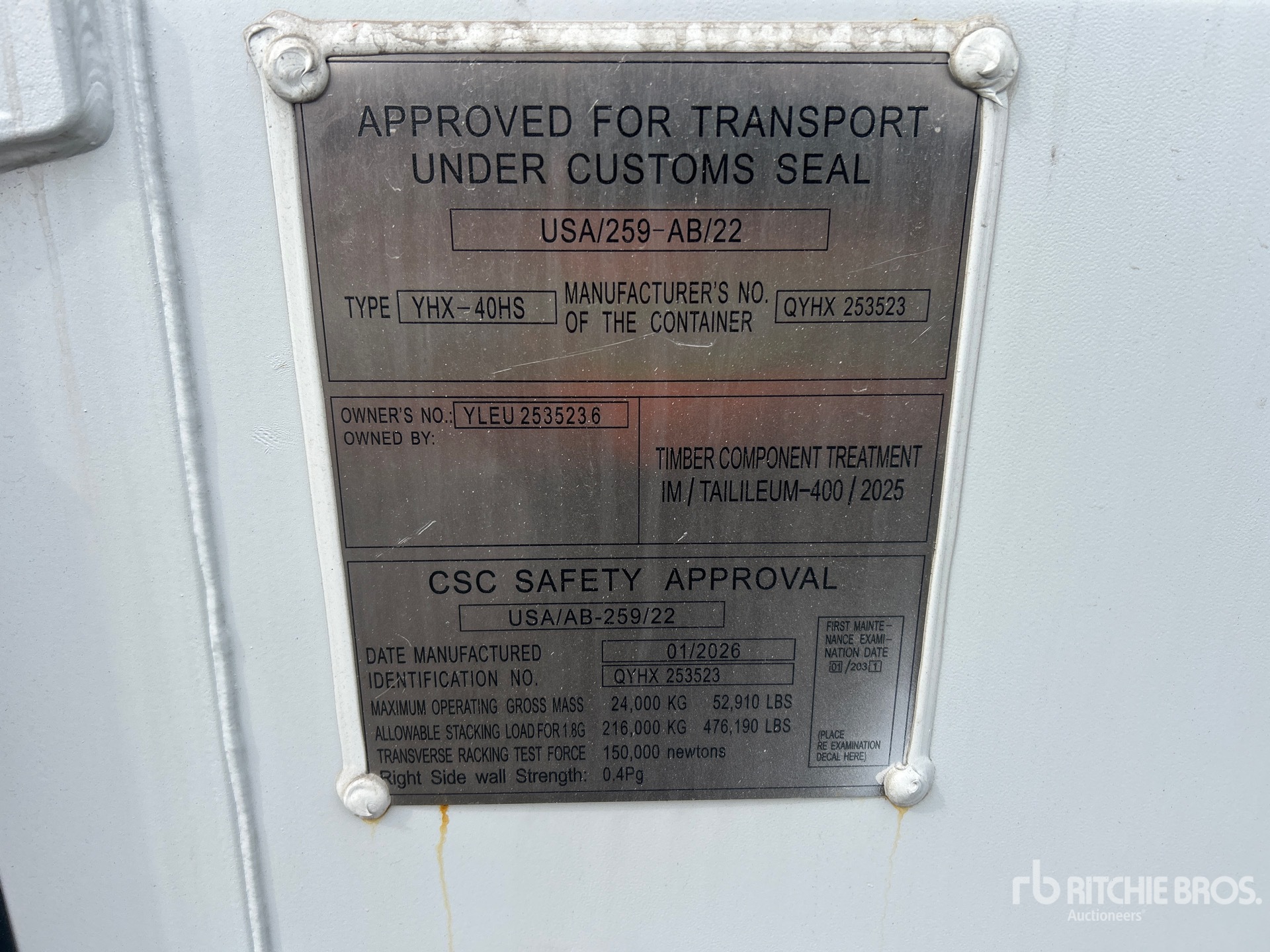 The detailed equipment information is limited in scope, and Ritchie Bros. Auctioneers has not inspected any aspects or components of the equipment other than those expressly set forth herein. Unless expressly stated, we make no representations or warranties, express or implied, concerning the equipment or its components, including without limitation any representations or warranties concerning functionality, conformity or compliance with any safety standard or requirement of any applicable authority or regulatory body, fitness for any particular purpose, or merchantability. You are strongly advised to perform your own detailed inspection of the equipment prior to bidding.