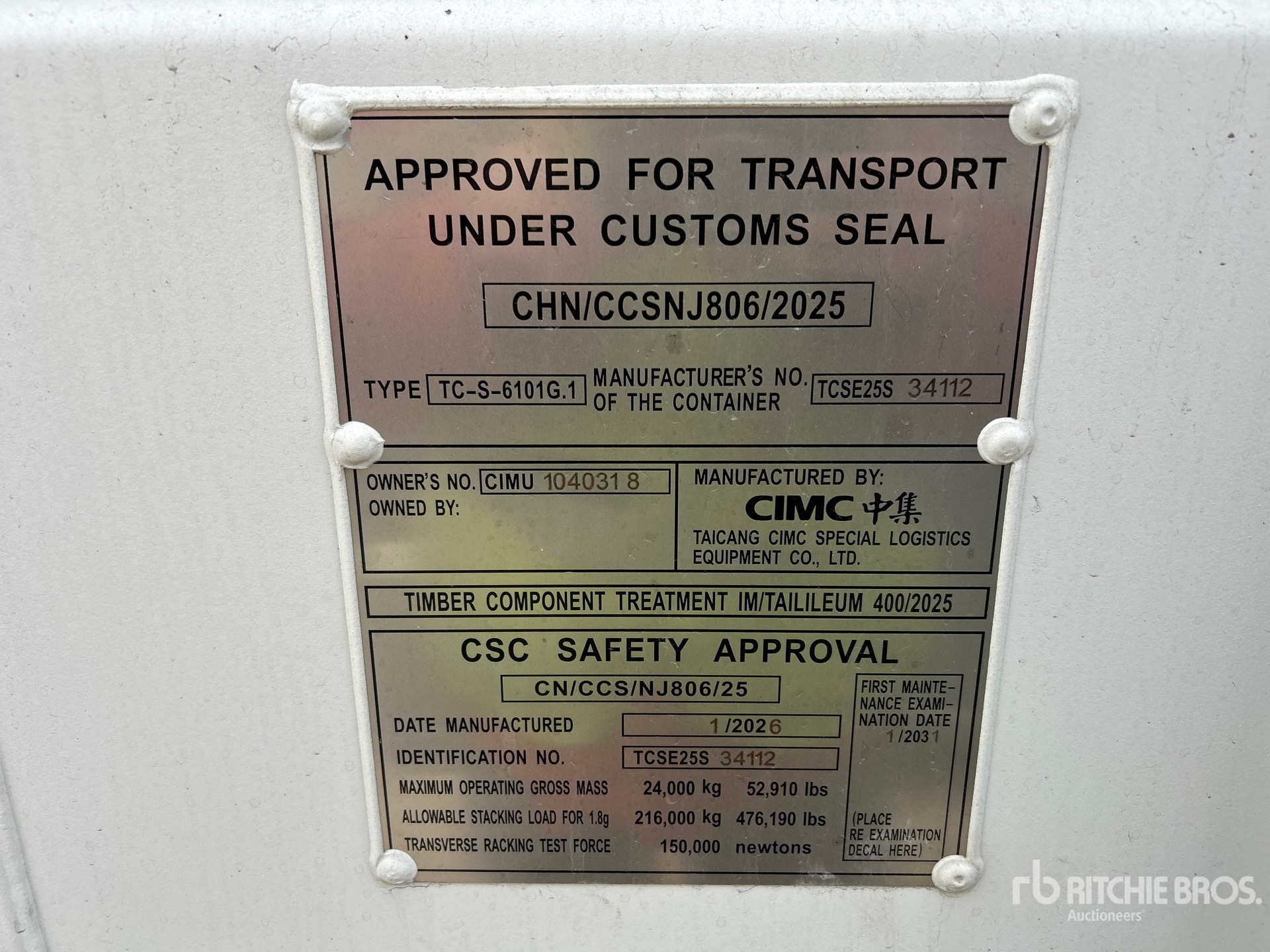 A qualified Ritchie Bros. employee collected detailed equipment information and performed functional tests on the key components of this asset. You, or a proxy, may also inspect any items on site prior to bidding on auction day.