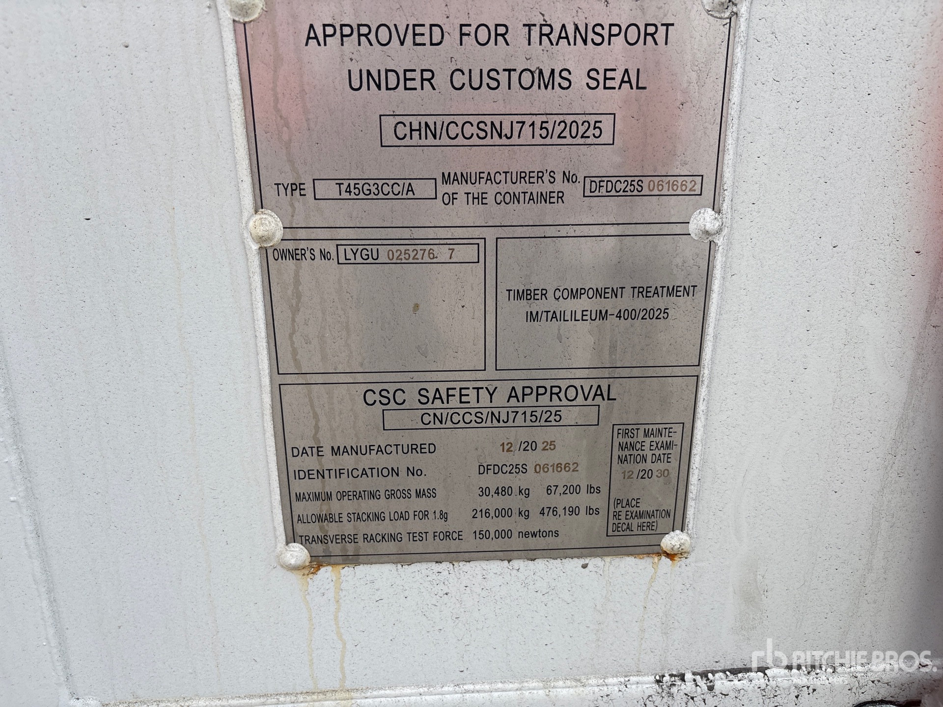 The detailed equipment information is limited in scope, and Ritchie Bros. Auctioneers has not inspected any aspects or components of the equipment other than those expressly set forth herein. Unless expressly stated, we make no representations or warranties, express or implied, concerning the equipment or its components, including without limitation any representations or warranties concerning functionality, conformity or compliance with any safety standard or requirement of any applicable authority or regulatory body, fitness for any particular purpose, or merchantability. You are strongly advised to perform your own detailed inspection of the equipment prior to bidding.
