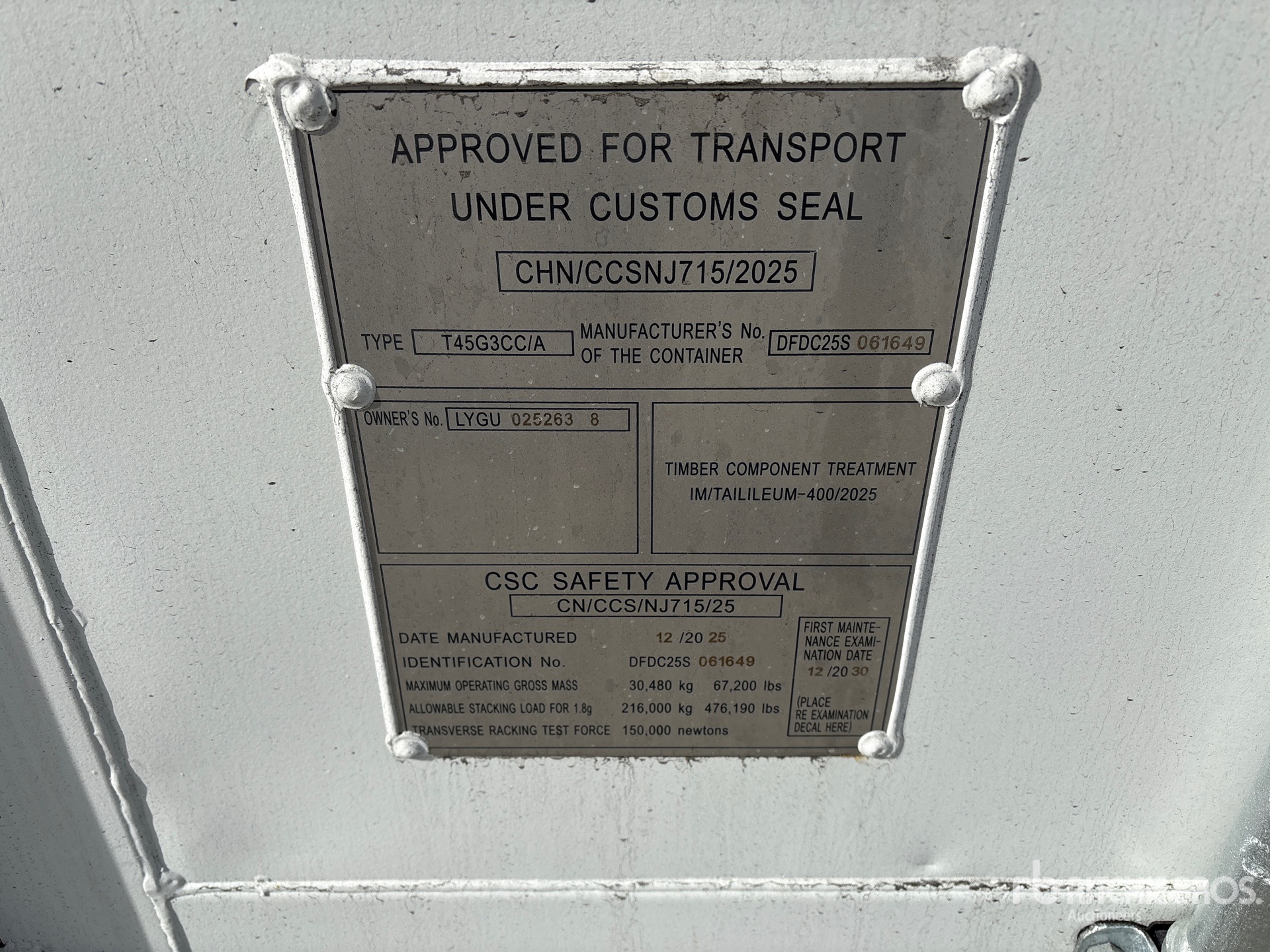 A qualified Ritchie Bros. employee collected detailed equipment information and performed functional tests on the key components of this asset. You, or a proxy, may also inspect any items on site prior to bidding on auction day.