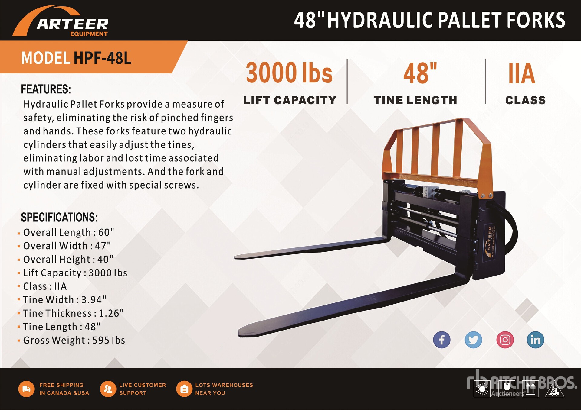 The detailed equipment information is limited in scope, and Ritchie Bros. Auctioneers has not inspected any aspects or components of the equipment other than those expressly set forth herein. Unless expressly stated, we make no representations or warranties, express or implied, concerning the equipment or its components, including without limitation any representations or warranties concerning functionality, conformity or compliance with any safety standard or requirement of any applicable authority or regulatory body, fitness for any particular purpose, or merchantability. You are strongly advised to perform your own detailed inspection of the equipment prior to bidding.