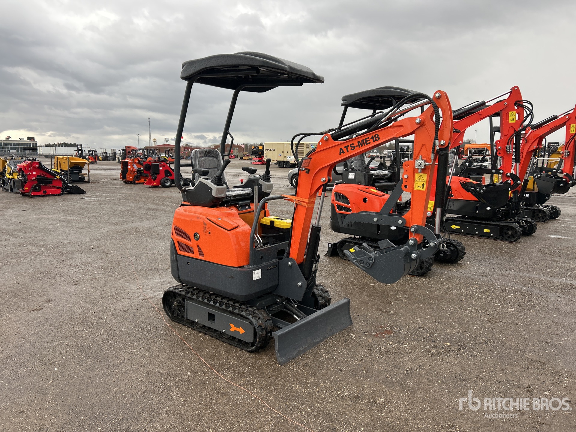 2 ft 7 in Stick, Auxiliary Hydraulic Plumbing, Backfill Blade, 7 in Rubber Tracks, 14 in Digging Bucket, Manual Thumb