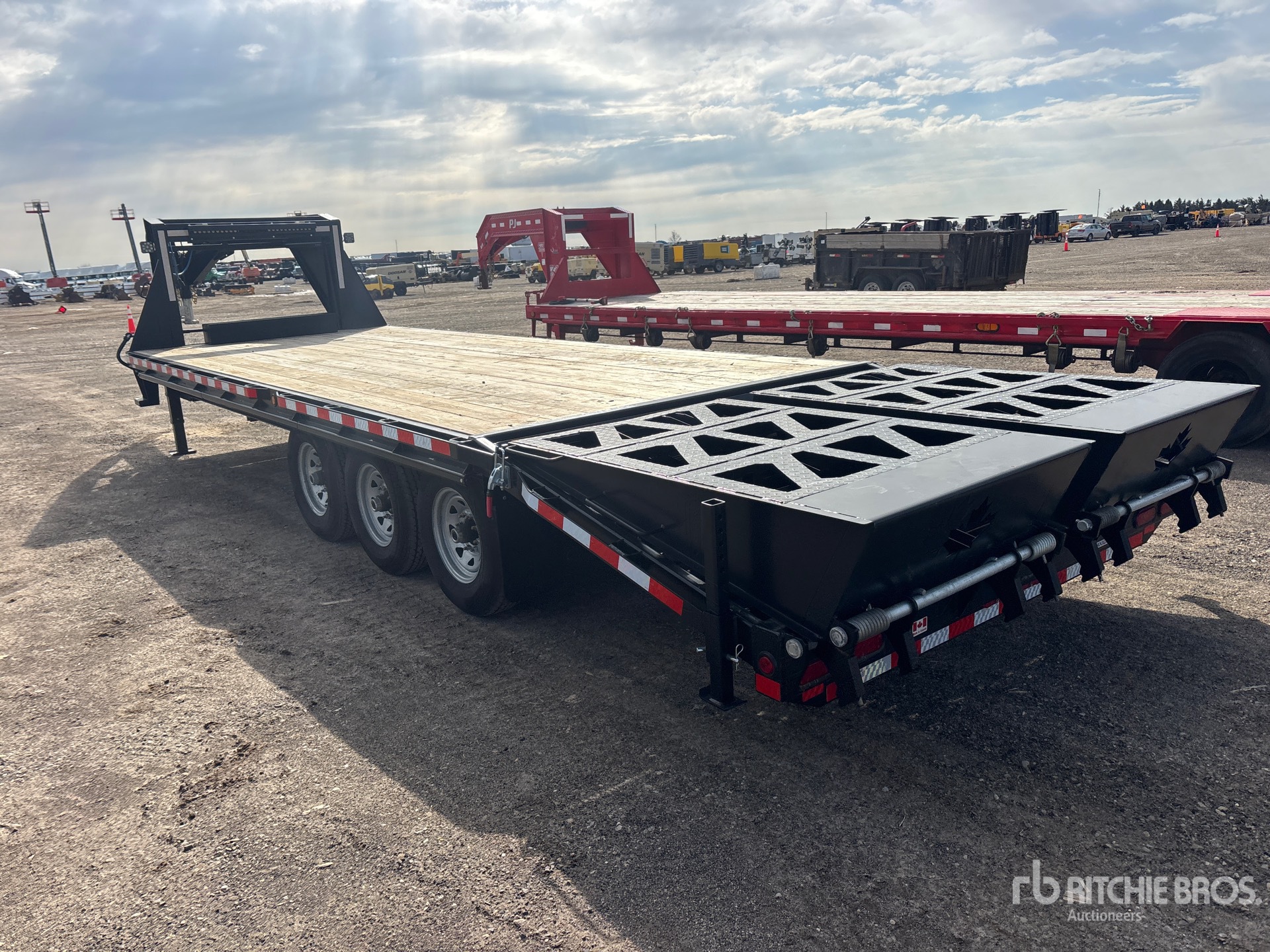 Spring Suspension, Electric Brakes, 19 ft 9 in Main Deck, 5 ft Fixed Dovetail, 102 in Overall Deck Width, Storage Compartments, Deck Over Tires, Spring Assisted Ramps, Wood Flooring, 235/80R16 Tires, 22680 lb GVWR