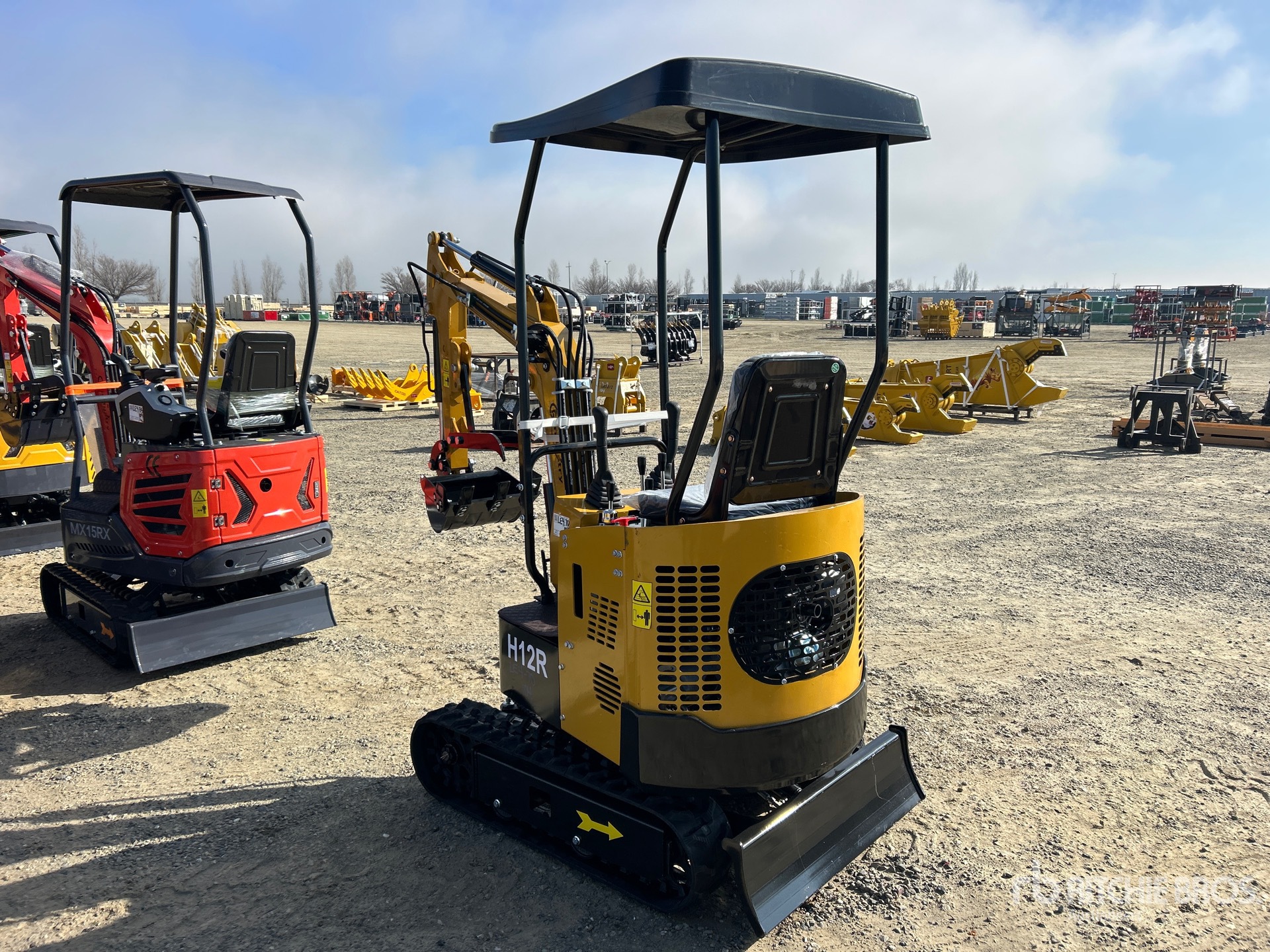 2025 US EPA Label, 2 ft 7.5 in Stick, Backfill Blade, 7 in Rubber Tracks, Manual Quick Coupler, 16 in Digging Bucket, Manual Thumb