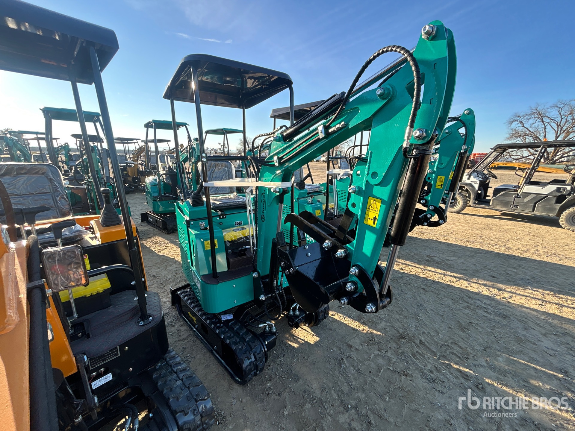 2025 US EPA Label, 2 ft 7 in Stick, Backfill Blade, 7 in Rubber Tracks, Manual Quick Coupler, 16 in Digging Bucket, Manual Thumb