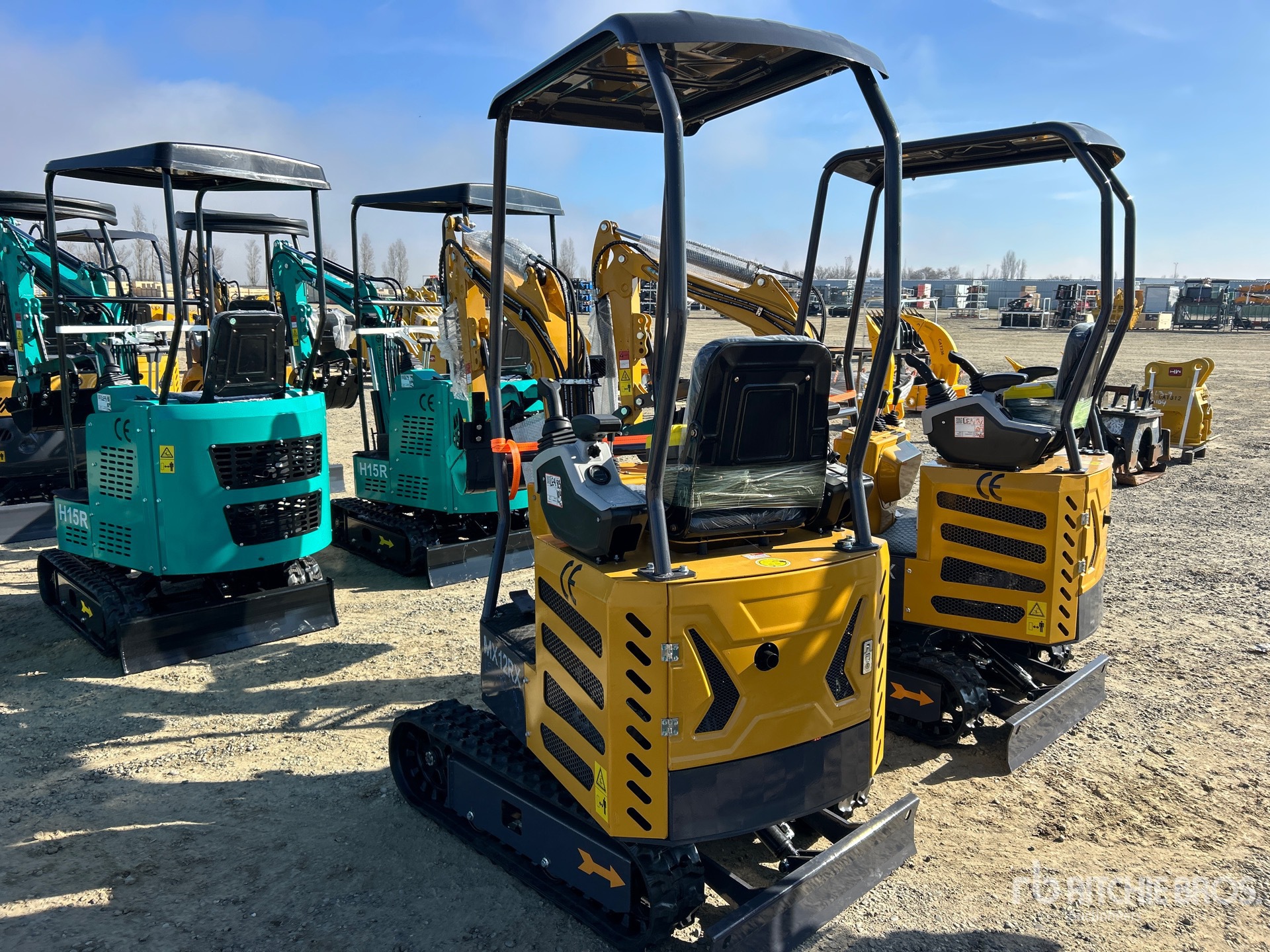 2025 US EPA Label, 2 ft 7.5 in Stick, Auxiliary Hydraulic Plumbing, Backfill Blade, 7 in Rubber Tracks, Manual Quick Coupler, 16 in Digging Bucket, Manual Thumb
